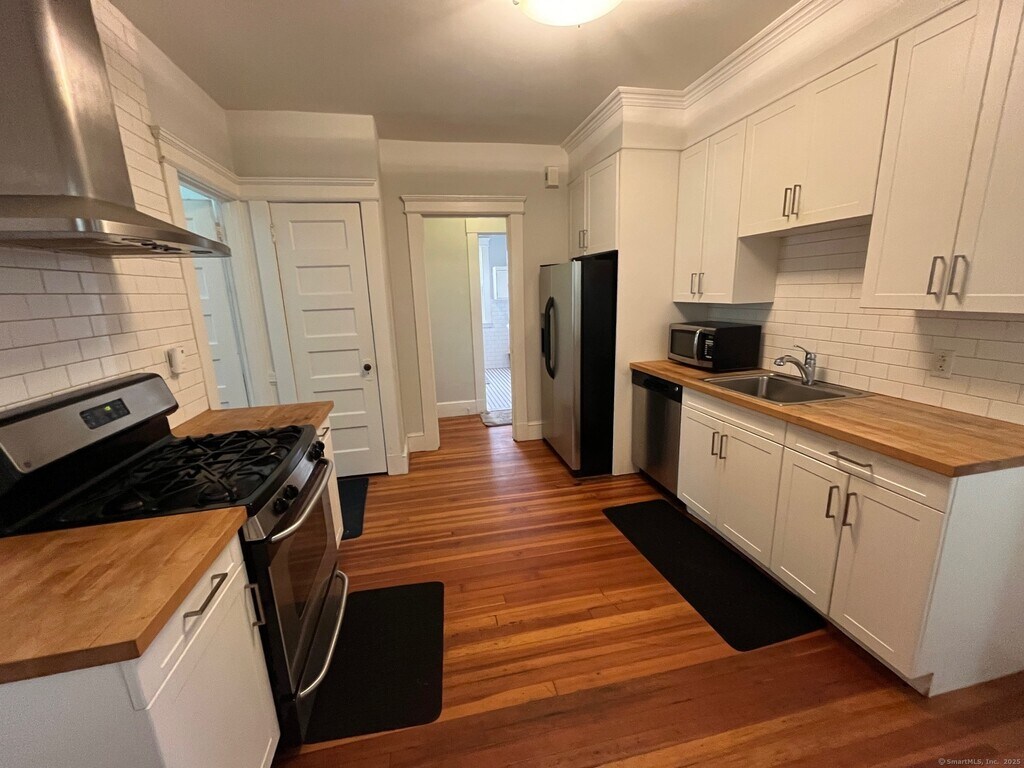 Call for Availability - Available November 1st, 2025 - Flexible lease with a 6-month minimum rental period. Spacious fully furnished first floor 2-bedroom, 1 bathroom unit located just steps off Yale Campus on Mansfield Street. This unit features central A/C, high 9 ft ceilings, large windows, gleaming hardwood floors; formal living room with bay window opens to a well-sized dining room; big eat-in kitchen. Ample storage. This unit has its own washer/dryer in the basement. Beautiful deep back yard. Cats are OK - sorry, no dogs. MLS# 24127693