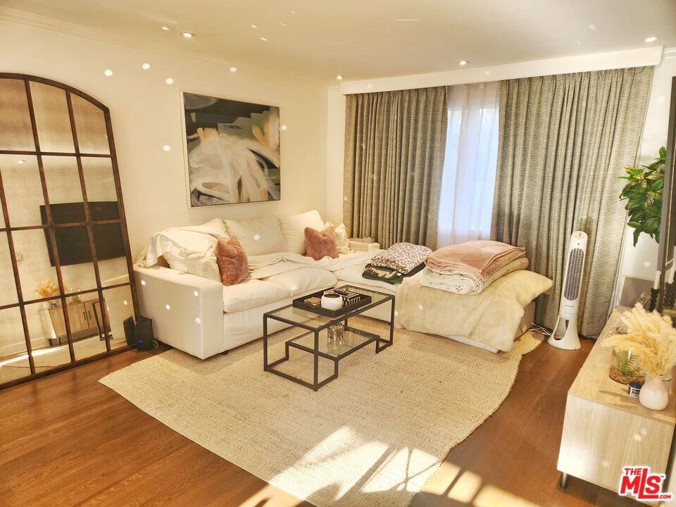 Introducing an exquisite apartment for lease in Santa Monica's most coveted neighborhood, just 300 feet away from Ocean Ave, North of Montana. Discover a coastal oasis nestled within a quiet corner of San Vicente Blvd. This mid-century walk-up building offers a unique, blooming with flowers courtyard, that leads directly to garages and a delightful sun deck area. Immerse yourself in the beauty of this apartment complex with easy access to Palisades Park, breathtaking sunset views, the beach, Montana Ave shopping, and an abundance of fine dining options. Step inside this remarkable 1-bedroom unit and be greeted by its charm. The kitchen features stylish cabinets, complemented by quartz countertops, sleek appliances, and elegant wooden floors. LED lighting illuminates every corner, creating a welcoming ambiance throughout the space. Step out of the kitchen exit door onto the staircase landing balcony that connects you to the backyard with a direct access to garages. Experience the prime location of Santa Monica as you enjoy the beach lifestyle from this idyllic setting. Take leisurely walks to the bluffs and relish in the stunning 180-degree ocean views. Pet-friendly. This unit also comes with one parking spot in a detached shared garage. W/D has in-unit hookup, if you would like W/D installed $100 will be added to the monthly rent. Otherwise, the laundry area is on the premises of the building. The apartment comes unfurnished, 1 year lease, located on 1st floor. Pet friendly. Broker/Agent does not guarantee accuracy of square footage, lot size, ordinances, zoning, rent control, permits, use code, schools and/or other information concerning the listing. MLS# 26654005