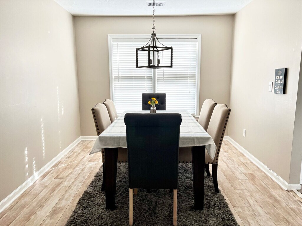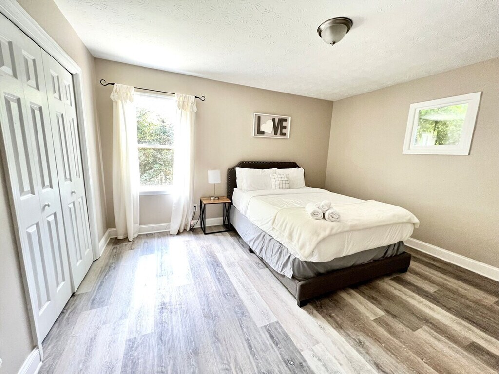 Situated in a prime location close to I-85, this spacious home offers easy access to shops, restaurants, hospitals, and more. Just 30 minutes from Downtown Atlanta, the property is only 5 minutes away from the Gas South Arena, making it perfect for event-goers. Guests will feel at home with access to the entire house, which includes four bedrooms, a large bonus room, a cozy kitchen, and a spacious back deck and yard ideal for entertaining. The house features a cozy kitchen equipped with basic kitchenware, allowing guests to prepare simple meals. A washer and dryer are included for added convenience. The large back deck and backyard provide an excellent space for entertaining and relaxation. Extra bedding sheets for air mattresses and bath towels are provided for parties of 8 guests or more and are available upon prior request at booking. Mid-stay cleaning services can be requested for an additional fee. Pets may be approved with prior authorization, and a nonrefundable pet fee of $150 per pet per stay applies, with a maximum of two pets allowed. Located in a nice and safe neighborhood, the home is surrounded by local eateries and markets offering a variety of ethnic cuisines and groceries. With quick access to the highway, guests can easily reach Downtown Atlanta in just 30 minutes. Check-in is at 4 pm, and check-out is strictly at 10 am, with a penalty fee of half the night’s stay for late check-out. No smoking is allowed inside or outside within 10 ft of the property, with a $250 cleaning charge for violations. The property has a maximum capacity of 10 people, and no unregistered guests are allowed overnight. A pet-free policy is in place unless prior authorization is given. The house is equipped with cameras outside for security, ensuring privacy inside. Guests must include all individuals in their booking and provide full names and ages within 24 hours of check-in. The property is not responsible for any pests due to the Georgia climate, and guests are advised to keep doors closed to prevent pests from entering. [SI]