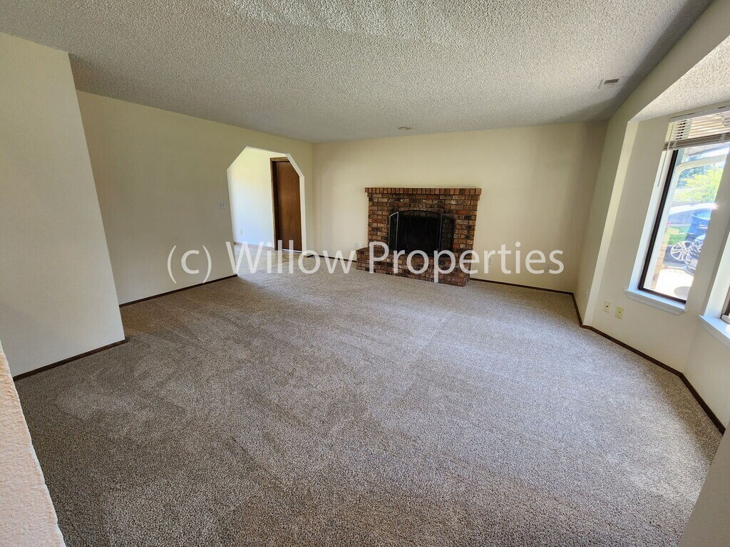 Spacious 2-bedroom duplex with a 1-car garage. Features a large living room with a cozy fireplace, dining area with sliding door to the backyard, and a master bedroom with an attached half bath. Includes additional off-street parking. Water, sewer, and landscaping services are included in the rent.