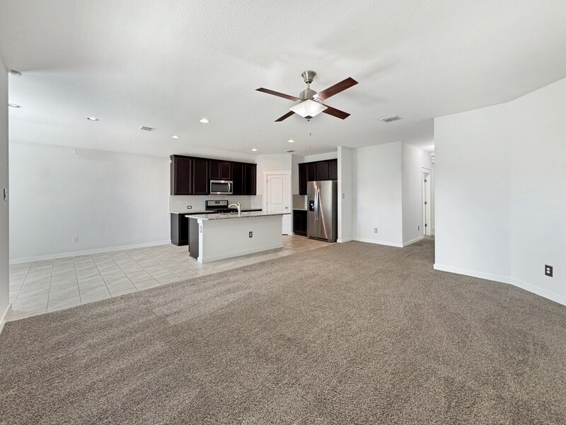 Move in Ready! Deposit-Free Living w/ Obligo!! Single-story 3 Bed / 2 Bath home impeccably maintained and full of upgrades. The open kitchen with large granite island flows seamlessly to the family room and breakfast nook, perfect for entertaining. The split master suite features an oversized walk-in shower and double vanity ...while all secondary bedrooms have walk-in closets and abundant natural light. Additional highlights include a water softener, front & back sprinklers, finished epoxy garage, and upgraded exterior with custom roofline lighting and modern sconces. -- All T2M Real Estate residents are enrolled in the Resident Benefits Package (RBP) $55.95/month offering a smarter, easier renting experience with built-in protection to 1M in identity theft protection, positive payment/credit reporting, insurance coverage of $100k, monthly discounts, rebates, and resident perks. --