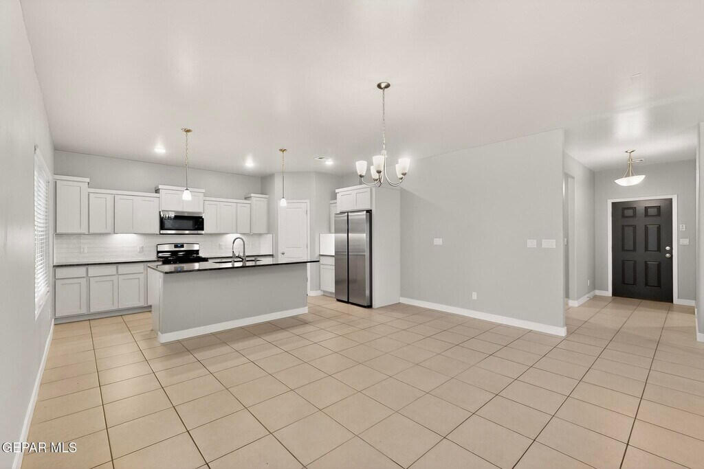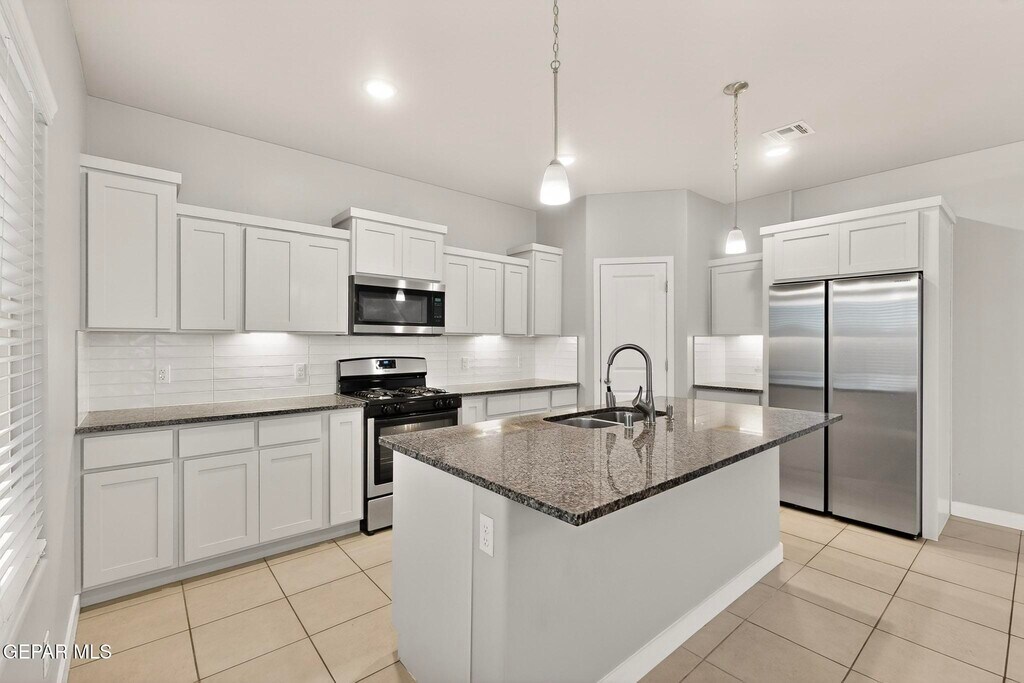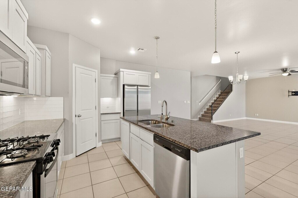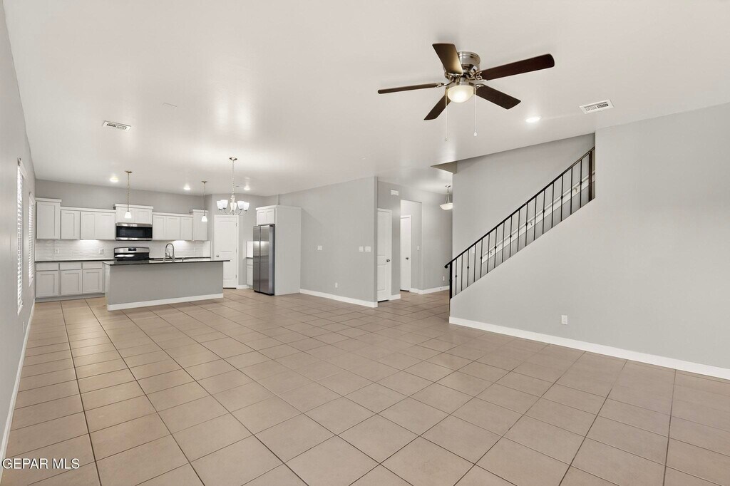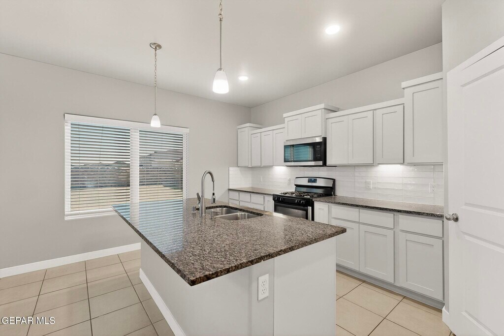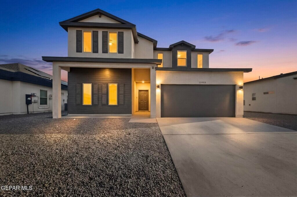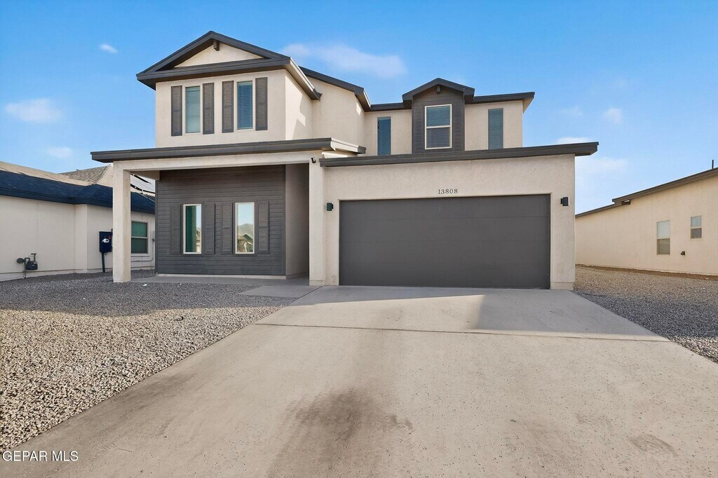 Welcome to this beautiful 2,265 sq. ft. two-story home located in the desirable Summer Sky subdivision of East El Paso. This thoughtfully designed 4-bedroom,3-bath home offers a functional layout with modern finishes and plenty of space for comfortable living. A covered front porch welcomes you into the foyer,where you'll immediately notice the open-concept design that seamlessly connects the dining area,spacious family room,and large kitchen ideal for entertaining or everyday living. The kitchen features a center island,ample cabinetry,pantry,and stainless steel appliances,making it both stylish and practical. Large windows allow natural light to fill the living spaces while offering views of the backyard. The main floor includes a private bedroom and full bath,ideal for guests,a home office,or multigenerational living. Upstairs you'll find a versatile loft area that can serve as a second living space,game room,or study area,along with three additional bedrooms including the spacious primary suite with walk-in closet and private bath. Additional features include refrigerated air,ceiling fans,tile flooring in main living areas,carpet in bedrooms,tankless water heater,and a double attached garage. The walled backyard with back access provides privacy and room for outdoor enjoyment. Located in the Socorro ISD,this home is just minutes from Eastlake Blvd,Loop 375,shopping centers,restaurants,parks,and growing Eastside amenities,offering convenient access to schools,retail,and entertainment.
