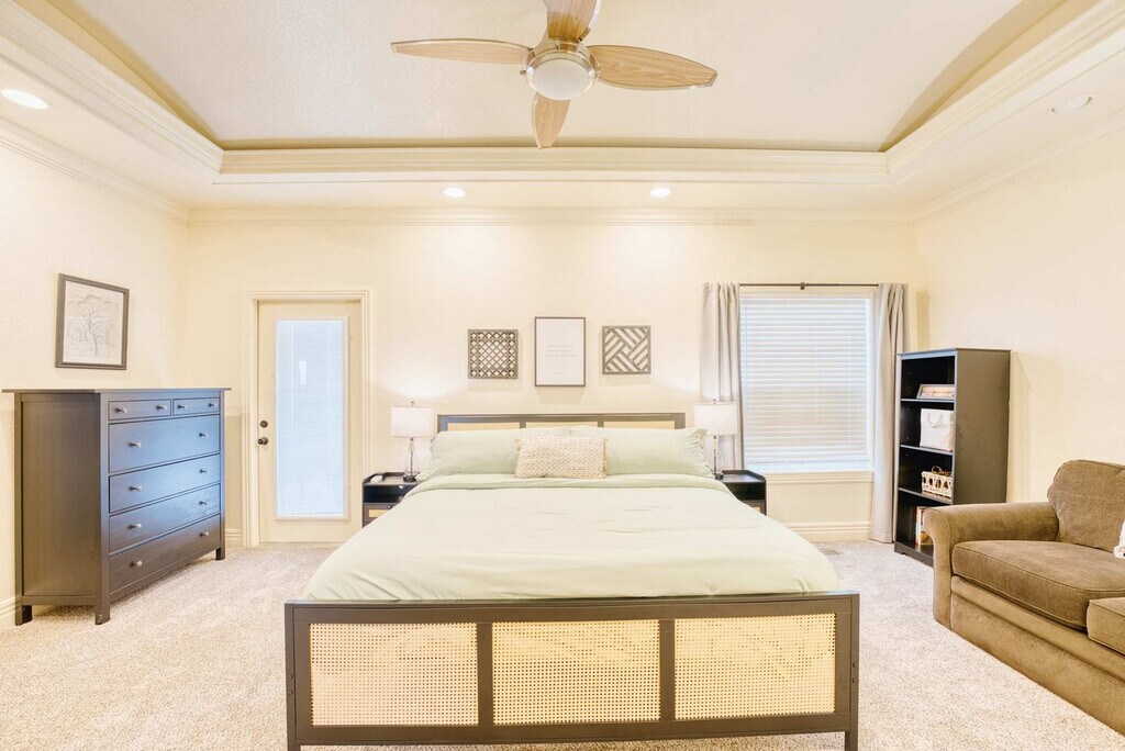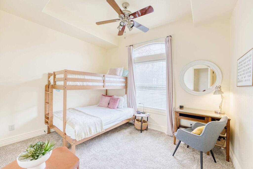 Feel at home in this spacious 3-bedroom, 2-bath home with a loft, located just outside Fayetteville city limits and only 15 minutes from the University of Arkansas. This home sleeps 10 and features a full kitchen, board games, cozy living spaces, large picture windows, a fenced yard, a fire pit, and a deck. The living room features stunning floor-to-ceiling windows that fill the space with natural light and overlook the surrounding trees. A fully equipped kitchen and dining area make it easy to cook and enjoy meals together. The main level includes three comfortable bedrooms and two full bathrooms. The upstairs loft provides extra sleeping space, ideal for larger families or groups. Pets are welcome with prior approval and a fee. This home sits just outside Fayetteville city limits, offering a peaceful setting surrounded by trees and open sky while still being only about 15 minutes from the University of Arkansas and downtown. Guests can enjoy the best of both worlds — a quiet retreat close to restaurants, shops, and Razorback game day excitement. The area has a relaxed, rural feel with plenty of room to unwind, yet it’s an easy drive to campus, the square, and local favorites like Dickson Street and Wilson Park. Beaver Lake and the Ozark National Forest are also nearby for those looking to explore the natural beauty of Northwest Arkansas. Northwest Arkansas National Airport (XNA) is about a 40-minute drive away, making arrivals and departures convenient while keeping you close to everything the region has to offer. Quiet hours are from 9 PM to 8 AM out of respect for neighbors and the natural setting. The property is on well water, which is safe to drink but water pressure can fluctuate if multiple showers are used at once. The garage is not available for guest use. The area has a peaceful, rural feel, and you may see or hear wildlife during your stay. [SI]