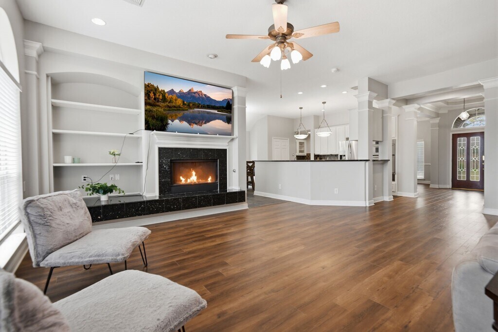 Discover the perfect blend of comfort,style,and functionality in this impressive one-story Longwood home. Thoughtfully updated with sleek laminate wood flooring throughout,it features a bright,modern kitchen with granite countertops,white cabinetry,and a spacious island ideal for gathering. The open,flowing layout includes a formal dining room,a dedicated study,and a central gameroom positioned between the secondary bedrooms—creating the ideal setup. The expansive family room with a cozy fireplace leads to a private primary suite with direct access to the sparkling pool. Outdoors,enjoy your own backyard oasis with plenty of patio space. Oversized garage provides storage &workspace. Applications will be considered mid May. MLS# 27366126