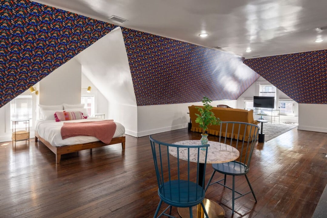 Feel at home in this one-of-a-kind, stylish and spacious studio, perfect for your Cincinnati experience. Located on the third floor of a walk-up building, this studio is peaceful, cozy, clean, and centrally located. This home boasts an in-unit washer and dryer, a cozy queen bed nook, a living area, bistro table, dedicated work desk, lounge spot, and a unique turret room for relaxing. Walk to great coffee and pastries at Urbana, an amazing cocktail at Anjou, and a delicious meal at Solstice. Centrally located near downtown, Over-the-Rhine, the University of Cincinnati, Xavier University, the Zoo, and area hospitals. Easy access (5-10 minutes) to all stadiums including Paycor Stadium, TQL Stadium, Great American Ballpark, Andrew J. Brady ICON Music Center, and Bogarts. Cincinnati Children's Hospital is 2 miles away (7-minute drive), UC Medical Center is 1.9 miles away (7-minute drive), Christ Hospital is 2.4 miles away (9-minute drive), St. Elizabeth Ft Thomas is a 13-minute drive (6.5 miles), and Jewish Hospital is a 16-minute drive (9.8 miles). Parties and amplified music are strictly forbidden without advance, written consent. Under Ohio Revised Code and Cincinnati municipal code, throwing an unauthorized party is considered criminal trespassing. If you throw an unauthorized party, charges may be pressed for criminal trespass, and you and your guests may be arrested on-site and prosecuted to the full extent of the law. Please observe quiet hours from 9:30 pm-8 am. In the event of a disturbance, one polite request (warning) may be given to come into compliance. If the request is not honored then your reservation will be terminated without refund. Amplified music is strictly forbidden at all hours without advance written consent. Do not smoke or light anything in this property, including tobacco, marijuana, incense, candles, and hookah. Cleanup of human biomaterial (e.g. vomit, defecation) will result in a minimum $300 cleaning fee. A $300 cleaning fee will be charged for cleanup of excessive pet hair. Stains on the carpets or linens will incur an $89 cleaning fee per item or the cost to replace, whichever is higher. Smoking indoors will incur a $300 cleaning fee. There is a $170 re-keying fee for unreturned keys. Units found with unreasonable amounts of waste, in complete disorder, and/or “trashed” will be subject to an additional $200 cleaning fee, or actual cost to clean, whichever is higher. If security / fire department / police fees or other costs arise out of or in connection with your behavior at the property, then you will be billed the cost. The minimum security fee is $150. Registration Number: 281751 [SI]