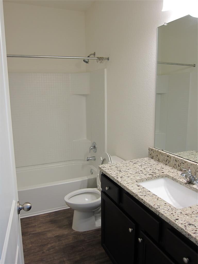 Newly remodeled 3-bedroom 2 bath home offering 1487 sqft of living space & 2 Car Garage! This beautiful home features a spacious floor plan with new flooring throughout the home with plenty of natural lighting. The kitchen has granite countertops and stainless steel appliances including a refrigerator. The primary bedroom includes a vanity, shower/tub combo, and large closet. Washer and Dryer are included. Great location in a community including access to a pool & new H-E-B!