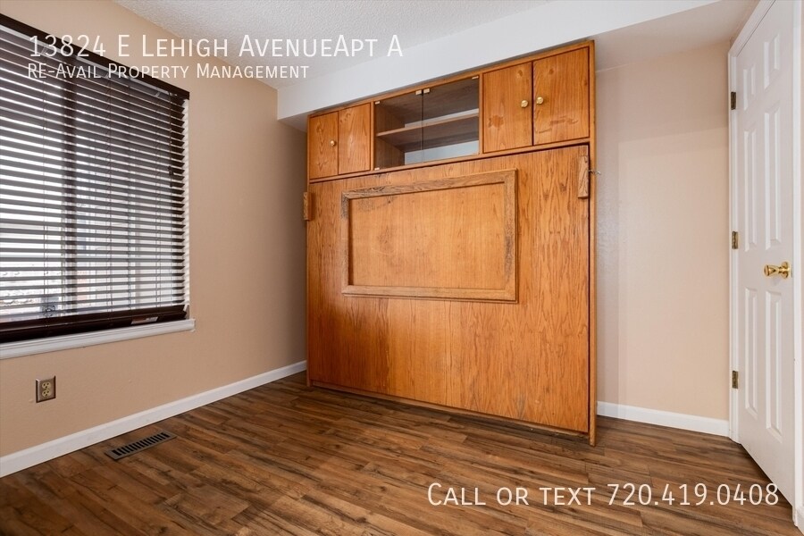 Bright and spacious two bedroom, one bathroom condo on main floor. - Two Bedroom - One Bathroom - Air Conditioning - Community Pool and Hot Tub - Ample Parking - Very Close to Cherry Creek State Park - Easy Access to i225 and Parker Rd - Murphy Bed in 2nd Bedroom can be Included or Removed This property is available immediately, schedule your showing with the RE-Avail Team ASAP!