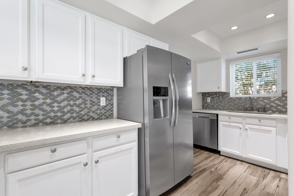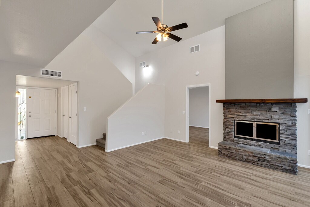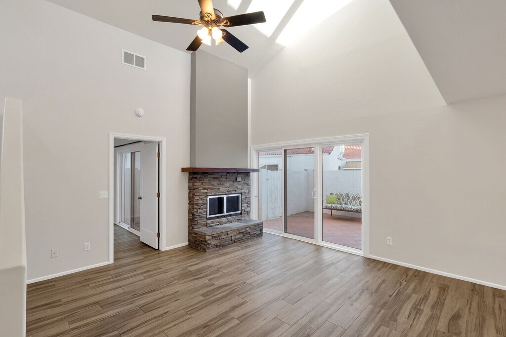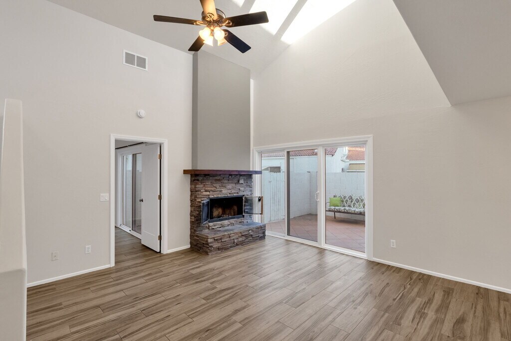 For Rent – Beautiful 2 Bed, 2 Bath Home with Private Backyard This charming 2 bedroom, 2 bathroom home is available for rent and ready for move-in! Step inside to find a bright open layout featuring a cozy fireplace, fresh new paint, and brand-new carpets throughout. The modern kitchen is beautifully updated with white cabinets, quartz countertops, and stainless steel appliances. Enjoy your own private backyard, perfect for relaxing or entertaining guests. The home also includes access to a community pool, giving you the best of both comfort and convenience.