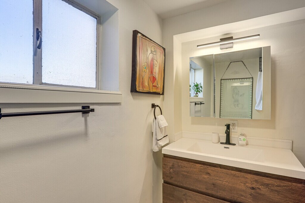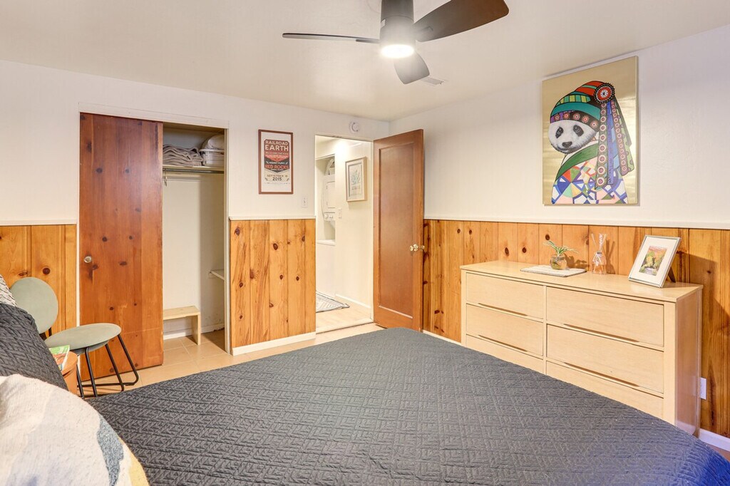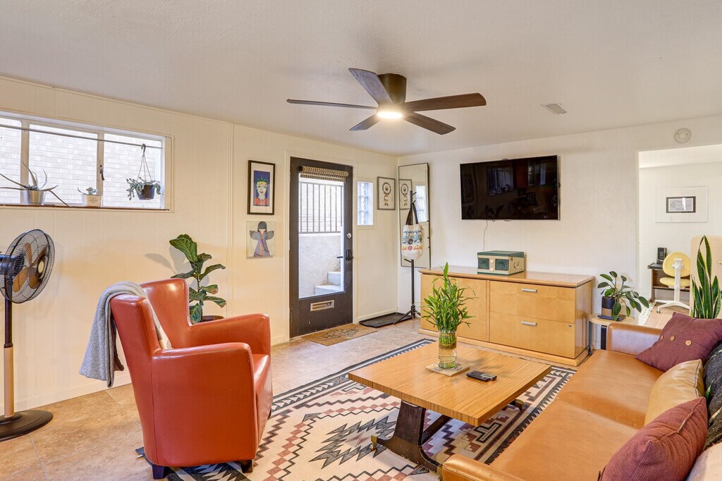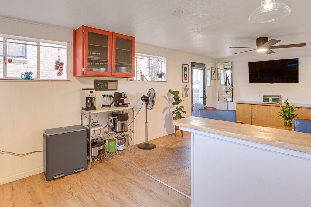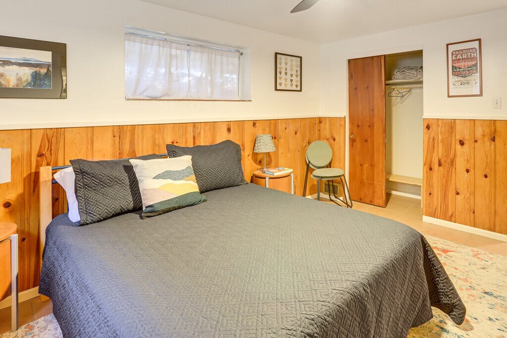 Feel at home in this Denver apartment, centrally located near major transportation hubs and cultural attractions. This single-story, 2-bedroom, 1-bath apartment is on the basement level and requires exterior steps to enter. The apartment features a TV, workspace, books, and a wood-burning fire pit. The kitchen is equipped with a refrigerator, stove/oven, dishwasher, blender, toaster, microwave, drip coffee maker, espresso machine, kettle, cooking basics, dishware/flatware, trash bags, paper towels, breakfast bar, and spices. You'll also find free Wi-Fi, central A/C and heat, ceiling fans, a washer/dryer, laundry detergent, hangers, linens, and towels. This apartment is pet-friendly with a $50 fee. With groceries and restaurants within walking distance, and Sloan’s Lake Park and the nearest light rail station nearby, you’ll always have the essentials close at hand. Other tenants are on-site in separate units. A Ring doorbell faces the main entry. Pets are welcome with a $50 fee. No events, parties, or large gatherings are allowed. [SI]