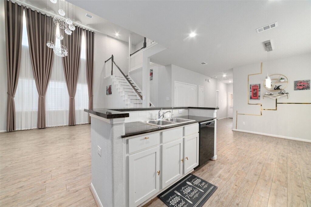 Beautifully maintained 2-story home located in a secure gated community near Highway 6 and the Bellaire area. This move-in-ready residence features laminated flooring throughout the entire home — NO CARPET. Enjoy soaring ceilings adorned with elegant chandeliers,a stunning wall of windows that fills the home with natural light,and open railings with a graceful staircase flowing into the living area. The open-concept kitchen offers granite countertops and comes fully equipped with washer,dryer,and refrigerator. The thoughtful layout is ideal for both everyday living and entertaining. Conveniently situated near Highway 6,shopping,dining,and the vibrant Bellaire area with popular Asian markets,restaurants,and community amenities. This home combines comfort,style,and an unbeatable location — a must-see opportunity! MLS# 36363686