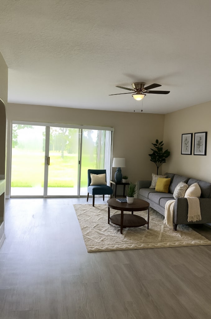 Lovely 2 bedroom 2 bath condo in the desirable golf course community of Audubon Villas in Hunter's Creek subdivision in Orlando. Gated community. Laminate flooring throughout, along with ceiling fans in common areas. Spacious living room with ample natural light. The unit comes equipped with standard kitchen appliances; washer/dryer hookups. The master bedroom has a walk-in closet and a separate vanity. Split plan bedroom with a built-in entertainment center. Open patio with storage room. Convenient access to shopping, restaurants, SR 417, Seaworld, Universal Studio, and Disney. Hunter's Creek has five parks with tennis courts, volleyball courts, fitness center, racquetball court, swimming pool, dog park, billiards, and many more. Showings by appointment only. Call now! Call Dinah @ / x 218 or email . Disclaimer: Images are virtually staged for marketing purposes only. Furniture and decor are not included.