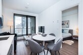 Welcome to your stylish urban retreat in downtown Montreal! This two-bedroom, one-bathroom condo offers plenty of space to live in style. Whether you're a young professional, a newcomer to the city, or a student seeking a comfortable and convenient home base, this apartment provides the perfect accommodation for your stay. Located near the Bell Centre, you'll be just steps away from the Golden Square Mile’s attractions. This new condo is very well located and features two bedrooms with one queen bed and one double bed. The apartment offers a shared workspace, conference room, complete gym, swimming pool, sauna, spa, yoga room, games room, cinema, and a terrace on the 4th floor with a workspace view. Indoor parking with in/out privileges is available for an additional fee, depending on your length of stay. We also offer a variety of cleaning services, including bi-weekly or monthly options, for an extra charge. No parties of any kind or loud noises that can alter the harmony of residents are allowed. Smoking, including cannabis and cigarettes, is prohibited inside the apartment, balcony, or the building. Please care about your home away from home. [SI]