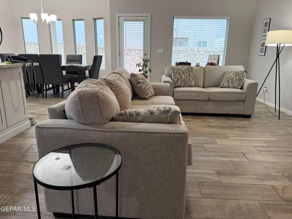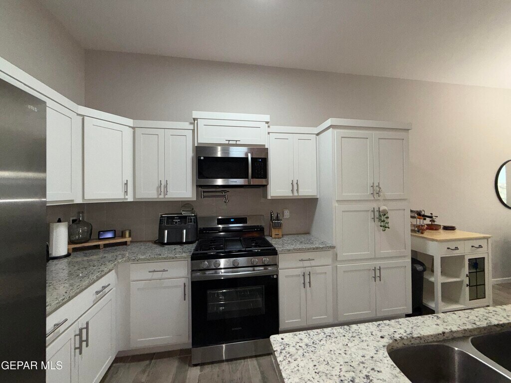Enjoy comfortable living in this spacious 3-bedroom,2-bath home offering 1,493 sq ft of open-concept space in the desirable Paseo del Este subdivision in Horizon City. The layout features a bright and inviting living area that flows seamlessly into the kitchen and dining space,ideal for both everyday living and entertaining. The kitchen is equipped with white cabinetry,granite countertops,and includes all appliances,along with a washer and dryer for added convenience. The home features a mix of carpet and tile flooring throughout and a 2-car garage. Residents will enjoy access to HOA amenities including a pool,fitness center,and outdoor grilling area. Conveniently located near shopping,dining,and major roadways.