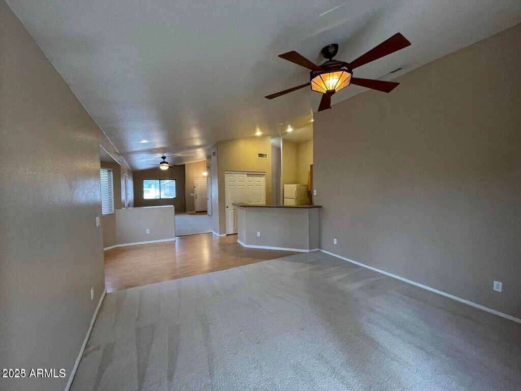 Step inside this inviting 3-bedroom,2-bathroom home offering 1,505 sq. ft. of comfortable living space with vaulted ceilings and an open,airy feel. The fully equipped kitchen features a pantry and breakfast bar,perfect for casual dining or entertaining guests,and flows seamlessly into both a formal living room and a cozy family room. The spacious primary suite is a true retreat with a dual-sink vanity,shower/tub combo,and walk-in closet. Two additional bedrooms share a full bathroom,providing ample space for family,guests,or a home office. Enjoy Arizona living in the private enclosed backyard,complete with a covered patio and room for grass or a play area. Located in the heart of Surprise,you'll be just minutes from top dining,shopping,and entertainment. Catch a Spring Training game at Surprise Stadium,cool off at the Surprise Aquatic Center with its slides and competition pool,or simply relax at home in comfort.