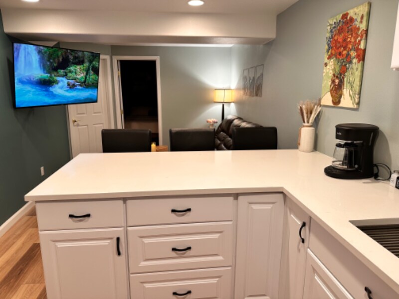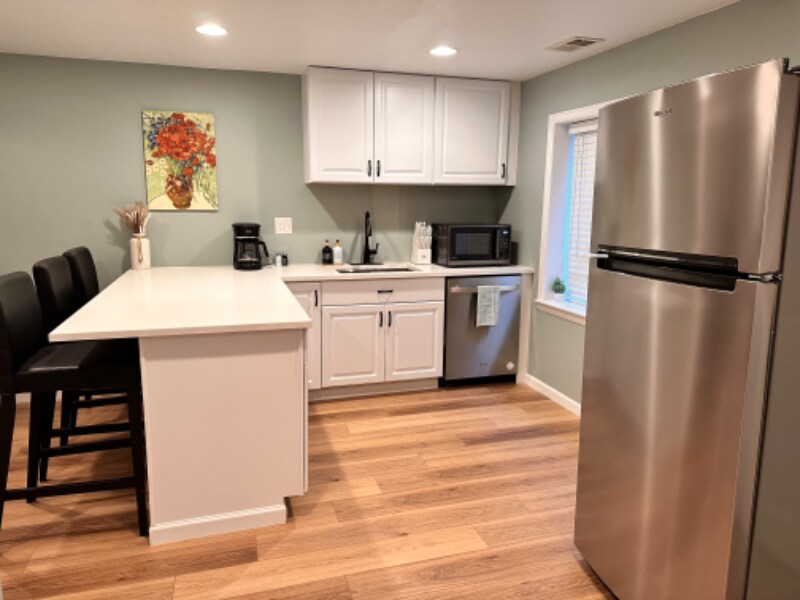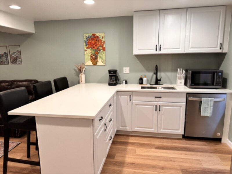 Property Id: 1556317 Very peaceful 1 bedroom, 1 bathroom basement apartment in a safe family neighborhood. Located in a cul-de sac nestled right up against the foothills. Fully furnished and all utilities included! Close to St. Anthony's Hospital, Swedish Hospital, Denver Health, Lutheran Medical Center, and NREL. This excellent location also includes WIFI and 2 Smart TVs. The full kitchen (with stainless steel appliances and quartz countertops) will allow you to cook all your favorite meals. Kitchen is fully stocked with bakeware, cookware, dishware, coffee maker, blender, 2 burner cooktop, air fryer, microwave, convection oven, crock pot, and griddle. Bedroom includes a cozy queen side bed, huge walk-in closet, and black out curtains. There is a private outdoor area, which includes a gas grill. Let this newly renovated apartment be your home away from home!