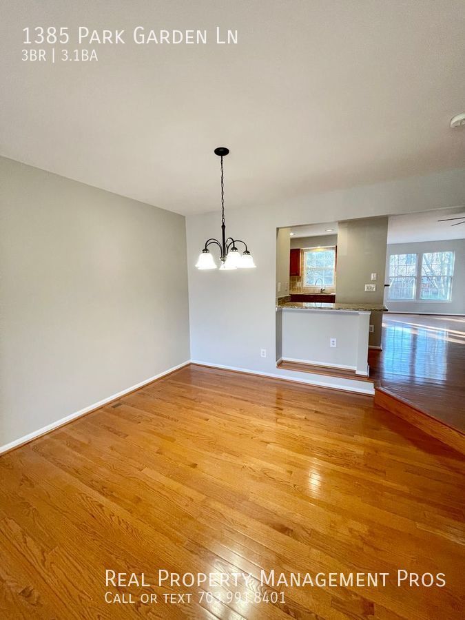 There is currently a 3 Bed 3 Bath Townhome for rent with 2,100 sq ft listed at 1385 Park Garden Ln. It is Available April 30, 2026.