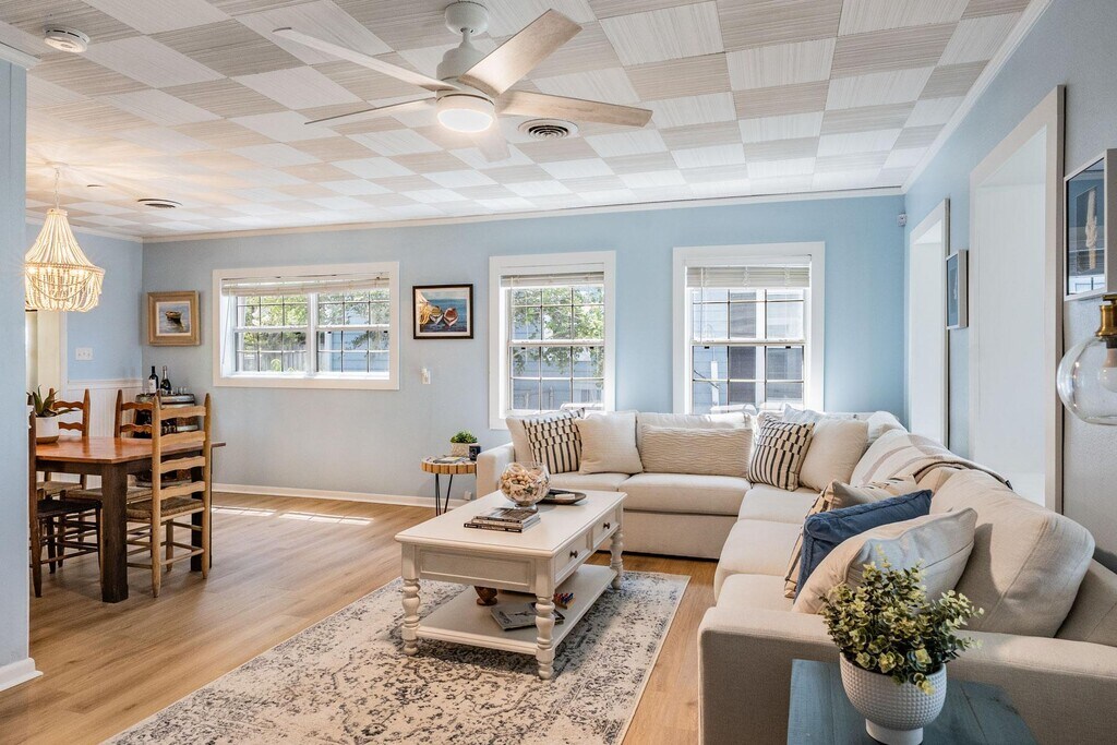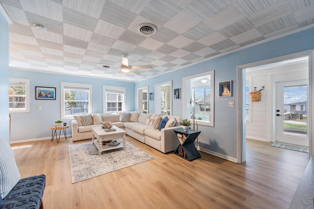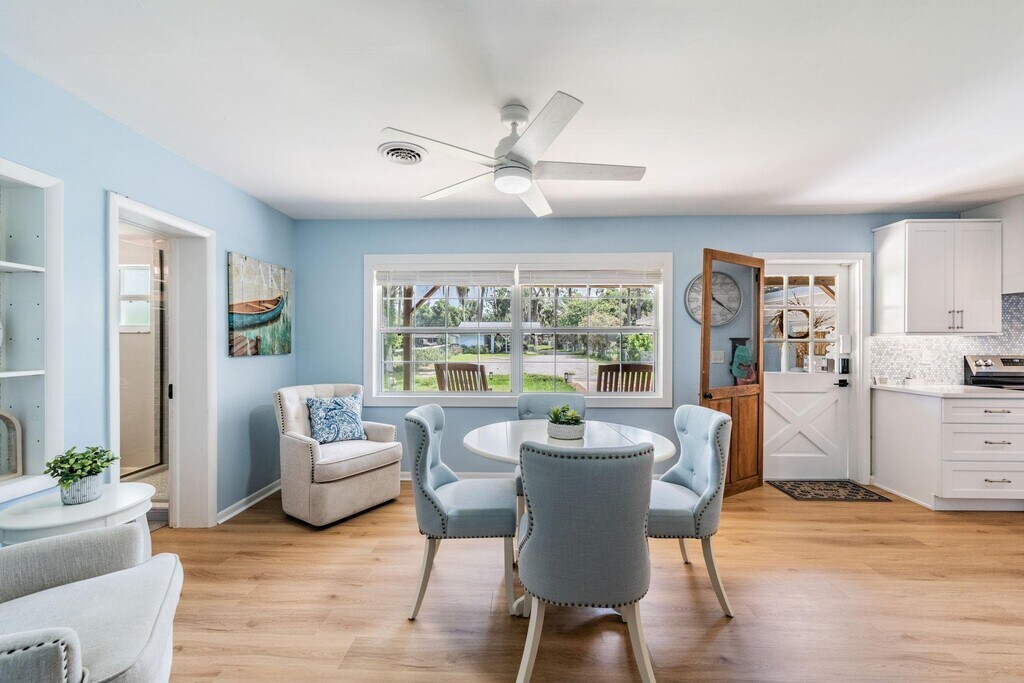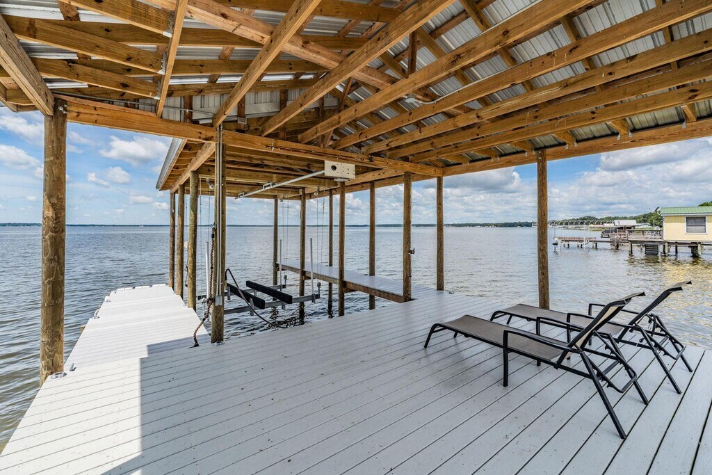The "Blue Canoe Lakehouse" has been freshly remodeled with the most thoughtful and tasteful touches. After enjoying the beach, covered dock, restaurants accessible by water, boat rentals and Lake Weir, enjoy the comforts of this beautiful home. With room to sleep 8, this home offers luxurious comforts to rest and recharge from a long day on the water. As you enter the home you find the kitchen, breakfast nook, and sitting area with a comfortable couch, that sleeps 2 as a trundle bed. Moving into the dining room, you see the living room and separate sitting room with lake views. The sitting area provided a sleeper sofa that sleeps 2. Down the hall you find 2 bedrooms and 2 bathrooms. The laundry room is in the separate building by the commercial ice maker, attached via a covered porch. Lakeside, enjoy a large deck off the house with ample sitting room accompanied by 2 covered lounging areas on the dock. Bring your boat! There are 2 boat ramps on Lake Weir and 2 restaurants both navigable by boat and anchor out right front by the beach. Want to stay in? Publix is 15 minutes away or order Kroger delivery is available as well. There are boat and jet ski rentals available through Eaton's Beach. The "Blue Canoe Lakehouse" has been freshly remodeled with the most thoughtful and tasteful touches. After enjoying the beach, covered dock, restaurants accessible by water, boat rentals and Lake Weir, enjoy the comforts of this beautiful home. With room to sleep 8, this home offers luxurious comforts to rest and recharge from a long day on the water. As you enter the home you find the kitchen, breakfast nook, and sitting area with a comfortable couch, that sleeps 2 as a trundle bed. Moving into the dining room, you see the living room and separate sitting room with lake views. The sitting area provided a sleeper sofa that sleeps 2. Down the hall you find 2 bedrooms and 2 bathrooms. The laundry room is in the separate building by the commercial ice maker, attached via a covered porch. Lakeside, enjoy a large deck off the house with ample sitting room accompanied by 2 covered lounging areas on the dock. Bring your boat! There are 2 boat ramps on Lake Weir and 2 restaurants both navigable by boat and anchor out right front by the beach. Want to stay in? Publix is 15 minutes away or order Kroger delivery is available as well. There are boat and jet ski rentals available through Eaton's Beach.