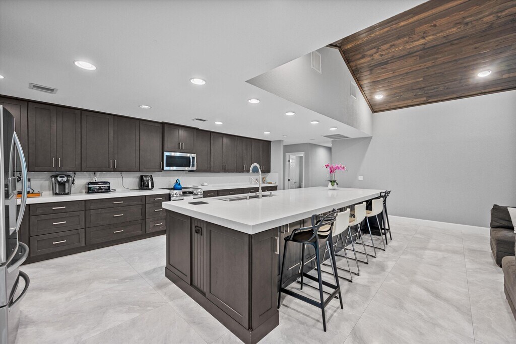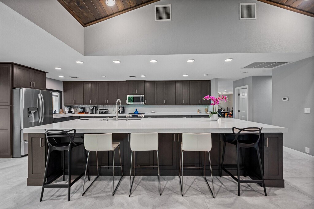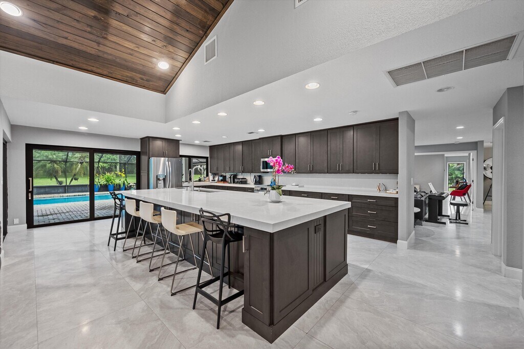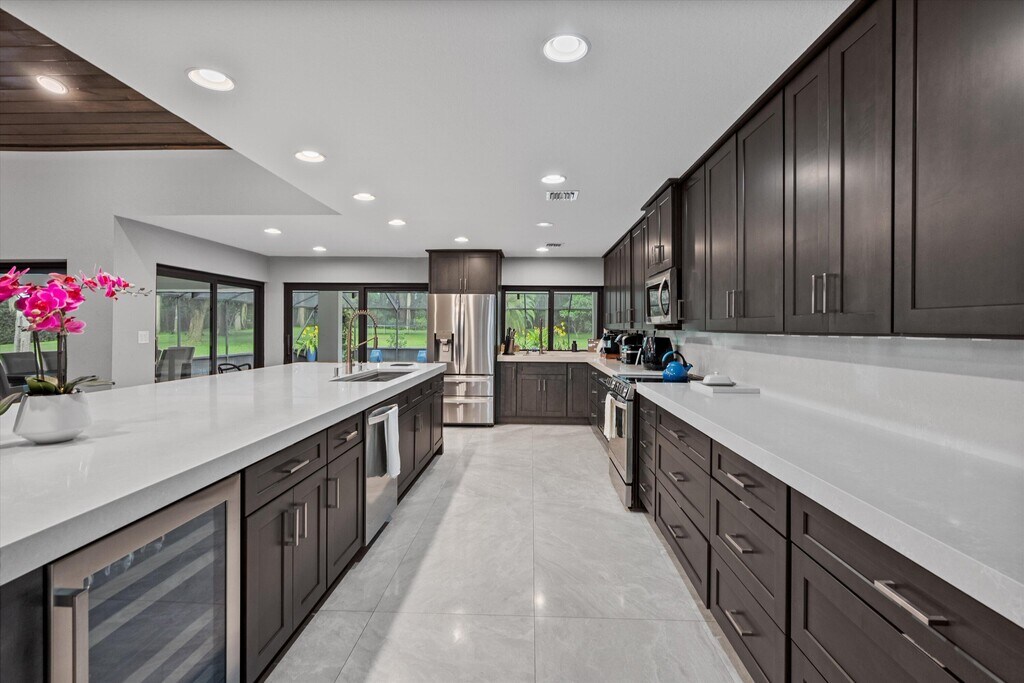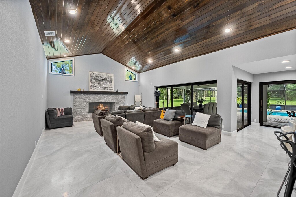 A hidden gem awaits in the highly desirable Pinewood Doubletree Trail community - where luxury living meets freedom with no HOA. Situated on a sprawling 1.17-acre lot, this beautifully updated 6-bedroom, 6.5-bathroom pool home offers over 4,292 square feet of refined interior space designed for both comfort and entertaining. The home features four ensuite bedrooms for ultimate privacy, along with a convenient Jack and Jill layout on the second floor. Inside, the first floor has been completely renovated with sleek, 30'' x 60'' modern porcelain tile that creates a clean and contemporary feel throughout. The open-concept kitchen and great room serve as the heart of the home, boasting quartz countertops in both the kitchen and bathrooms, along with an oversized center island measuring 13'9'