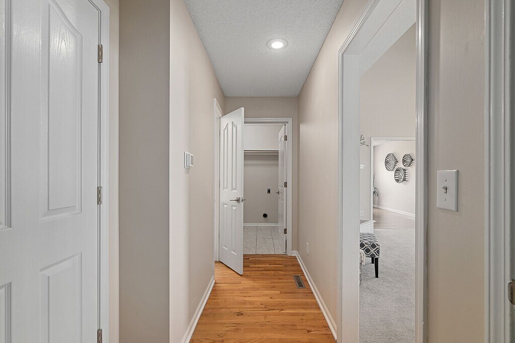 Clean and well maintained two story townhome available June 2026! Main level features open and bright great room with all new carpeting. Updated kitchen and eat in dining room with hardwood floors. White cabinets, stainless appliances and spacious pantry! Half bath and laundry room - w/d not included. Primary bedroom upstairs with walk in closet and en suite bathroom with double vanity. Two additional bedrooms with shared bathroom. Unfinished basement with ample storage space. Two car garage with epoxy floors. Private patio overlooks fenced yard. Adjacent to green space and great trail system! Community swimming pool! Owner paid HOA includes lawn care, snow removal and trash/ recycling. Sorry, no pets allowed.