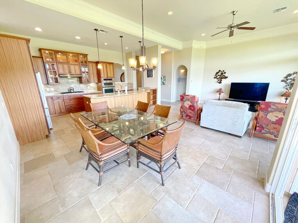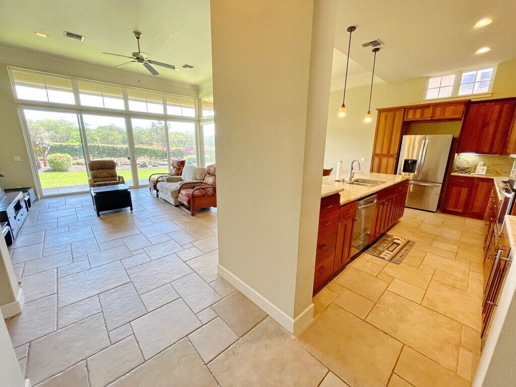 Welcome to your Maui retreat—a beautifully crafted, single-level residence in the exclusive gated community of Hokulani Golf Villas. Available for a minimum 12-month lease starting November 15, 2025, this 2-bedroom + den home offers the perfect blend of luxury, privacy, and low-maintenance island living. The flexible den space is ideal for a home office, guest room, or creative studio. Inside, you'll find elegant finishes throughout, including tile and luxury vinyl plank flooring. The grand eight-foot mahogany front door opens into a spacious, light-filled interior with vaulted ceilings and premium appliances. Floor-to-ceiling glass sliders and windows invite seamless indoor-outdoor living—perfect for embracing the Maui lifestyle. Perched on the gentle slopes of Haleakala surrounding the Maui Nui Golf Course, this freestanding home features no shared walls and boasts sweeping views of the 18th hole with Haleakala as a breathtaking backdrop. Enjoy a private driveway, a two-car garage, and a beautifully landscaped yard designed for both tranquility and ease. The home feels private and peaceful, with greenery providing natural separation from neighboring properties. As a resident of Hokulani Golf Villas, you’ll have access to resort-style amenities including a stunning infinity-edge pool, spa, BBQ area, and a beautifully designed clubhouse with a full kitchen—ideal for entertaining or simply relaxing. Included in Rent: • Water • Landscpaping • Standard trash removal • A/C servicing • Full use of community amenities Tenant Responsible For: • All other utilities • Maintaining active renters insurance This home offers the best of both worlds—the ease of condominium living with the comfort and privacy of a single-family home. Whether you're working remotely or seeking a serene long-term island escape, this residence is the perfect place to call home.