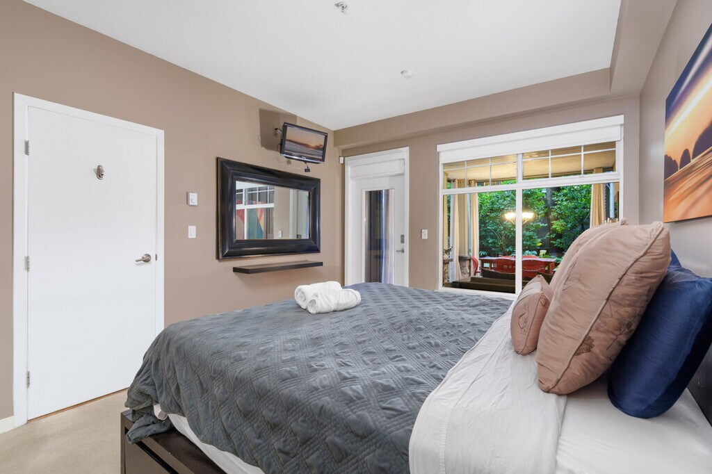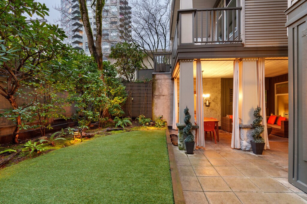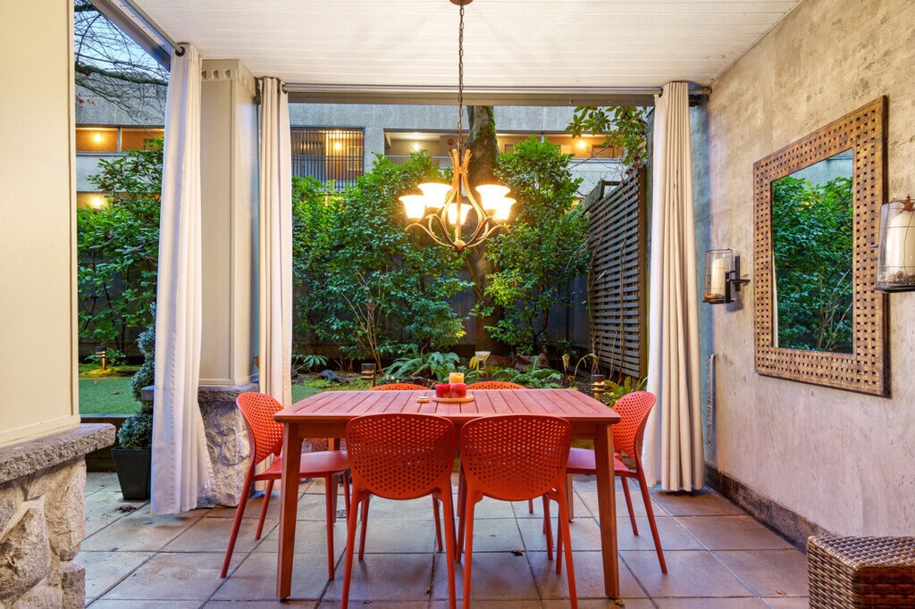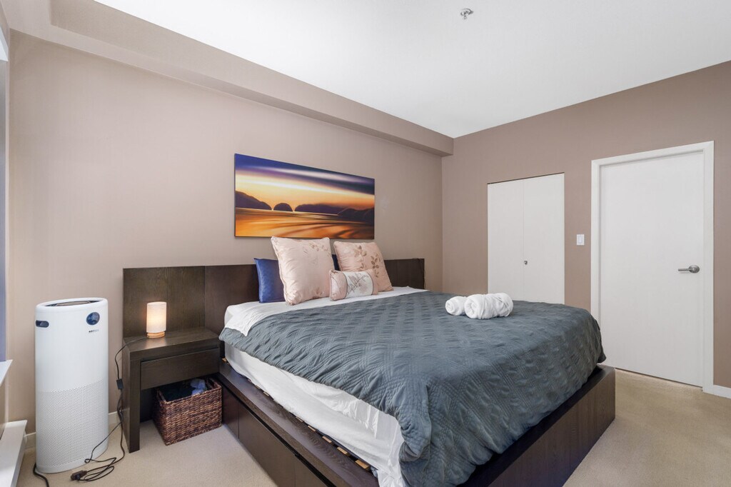 The advertised rate of C$19,920/month is the lowest available price, based on a 30 day(s) stay with a move-in date of October 22, 2026. Rates vary depending on the duration of stay, season, and other parameters. For exact pricing and additional pricing components, please visit our website and enter your desired move-in and move-out dates. The rate is applicable when billed upfront; it can be higher if billed in multiple payments. Feel at home in this rare ground-level 2-bedroom, 2-bath residence in Vancouver’s coveted West End. This apartment offers 954 sq ft of refined interior space plus an exceptional 885 sq ft private backyard oasis, ideal for gatherings. The apartment features an open-concept living area with a fireplace and Smart TV, a fully equipped kitchen with modern appliances and island seating, and a dining area with seating for four. The primary bedroom has a king-size bed, patio access, closet storage, and an en-suite. The second bedroom offers closet storage. There are two full bathrooms: one en-suite with a tub/shower combo and one bathroom with a walk-in shower. Enjoy the in-suite Whirlpool washer and dryer. Enjoy the covered patio with outdoor sectional seating and a fire table, and a covered outdoor dining area with seating for six. One secured garage parking stall is included. Stay in Vancouver’s iconic West End during the FIFA World Cup 2026. You’ll be minutes from BC Place Stadium while surrounded by English Bay Beach, Stanley Park, and vibrant Davie Street dining. This residential setting offers both energy and privacy, perfect for enjoying match days and relaxing between games. BC Place is approximately 8–10 minutes by car or a quick bus ride. Burrard SkyTrain Station is within walking distance for easy access across downtown and direct airport connections. The area is extremely walkable and bike-friendly. This property uses an in-person key handoff upon check-in. The team will coordinate the exact time and meeting point with you before your arrival to ensure a smooth check-in experience. There are security cameras outside the building and in the lobby. No parties, events, or large gatherings are allowed. No smoking is allowed in the property and its vicinity. Stable internet connection, perfect for remote work. The second bedroom bed is being installed; virtual staging may be shown. The bed will be ready before check-in. [SI]