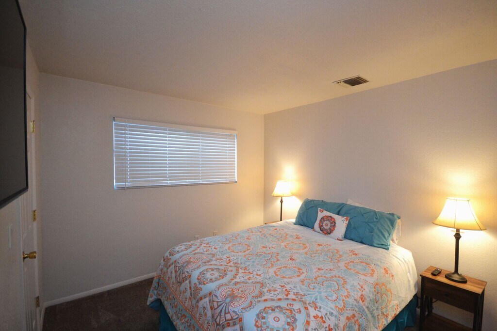 *SHORT TERM RENTAL* NO PETS* Welcome to your home away from home in Bullhead City! This charming 3-bedroom, 2-bathroom house is the perfect retreat for those looking to enjoy the beauty and excitement of the Colorado River area. With a prime location just a block away from a boat launch and close to shopping, you'll have everything you need at your fingertips. The house features a spacious living room with a smart TV and comfortable seating, where you can relax by the beautiful decorative fireplace with candles. The fully equipped kitchen has all the essentials for preparing your meals, and the convenient in-unit washer and dryer make laundry a breeze. The cozy primary bedroom includes a plush bed, ample lighting, and a smart TV for your entertainment. Modern bathrooms offer plenty of storage space and bright lighting for your convenience. Step outside to enjoy your morning coffee or evening drinks on the covered patio, complete with a picnic table and seating. The fenced backyard offers privacy and a safe space for outdoor activities. This home is located just a block away from the Colorado River's boat launch, making it perfect for water enthusiasts. Additionally, it is close to shopping centers for your convenience and a gas station with a mini mart at the end of the block for quick essentials. Within 6 miles, you can explore the vibrant Laughlin casinos, providing endless entertainment options. Situated in the heart of Bullhead City, this fully furnished rental offers all the comforts of home, making it ideal for both relaxation and adventure. The landlord covers up to $150 in utilities, and smart TVs are available in the living room and bedrooms. Don't miss out on this charming rental. Contact us now to secure your booking and start planning your Bullhead City getaway!