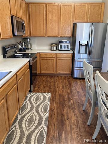 Charming 3 bed / 2 bath with attached 2 car garage. Recent updates include fresh paint and LVP flooring throughout in addition to a new concrete patio. The living room features vaulted ceilings, built-in bookshelves and a gas fireplace. The spacious eat-in kitchen includes all stainless appliances. The primary bedroom has an attached 4 piece master bathroom. The fenced backyard has plenty of room to play. Excellent neighborhood - next to Reunion. Close to schools, parks, trails, Bison Ridge Rec Center, and restaurants. Easy access to Hwy 2, Hwy 76 and E-470. Only 15 minutes to DIA and 25 minutes to Downtown Denver. Pets are considered on a case by case basis. Available now! Looking for tenants with credit score of at least 650, combined gross income of $5600+ per month, no evictions. Tenants are responsible for gas, electric, water and sewer. Lease administration fee equal to 5% of 1 month's rent charged with first month's rent. Per HB23-1099, a prospective tenant has the right to provide the landlord a portable tenant screening report, as defined in section 38-12-902(2.5), Colorado Revised Statutes; and if a prospective tenant provides the landlord with a portable tenant screening report, the landlord is prohibited from charging the prospective tenant a rental application fee; or charging the prospective tenant a fee for the landlord to access or use the portable tenant screening report. The portable tenant screening report must be provided to the landlord directly by the consumer reporting agency and can be no more than 30 days old. Single Family Residence MLS# 8608260