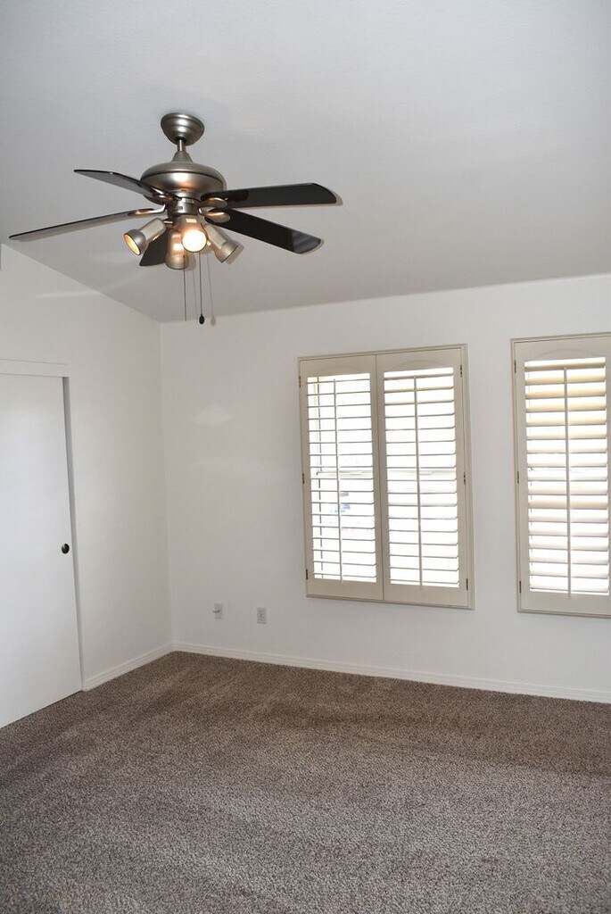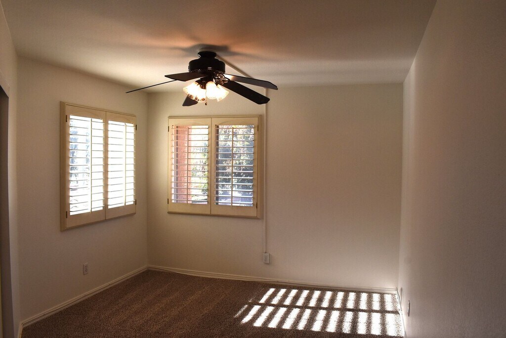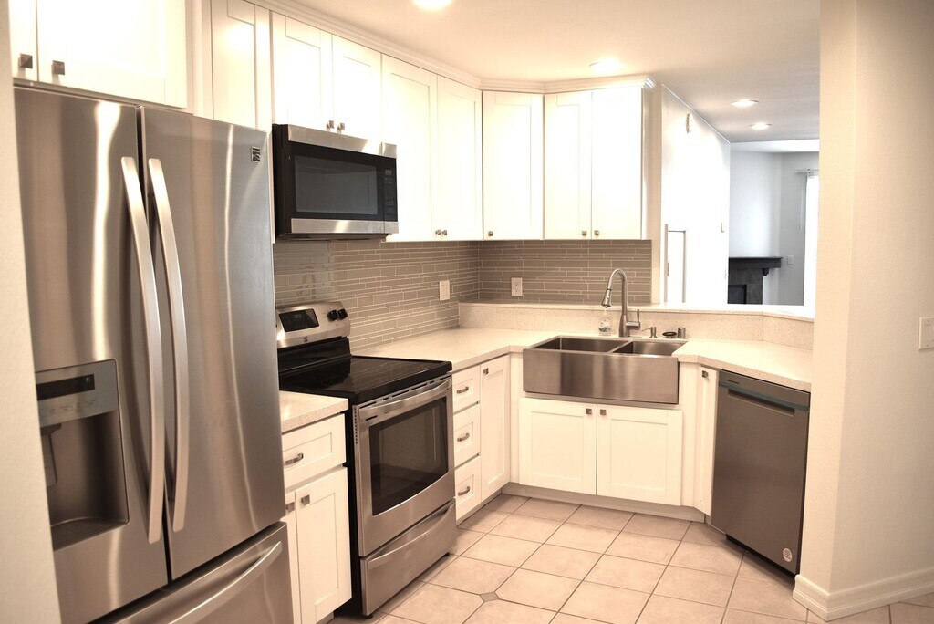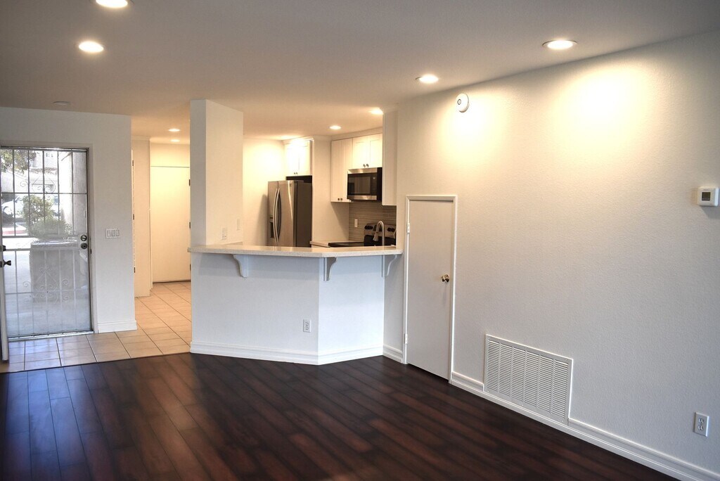 This 3 bedroom 2.5 bath 2 story townhome features wood flooring in living room, stairs, upstairs hallway and 1 bedroom. Tile flooring in kitchen, new rectangular subway tiles in both full bathrooms and carpeting in master bedroom and second bedroom. Plantation shutters throughout home with vaulted ceilings in living room, bedroom 2 and master bedroom. Upstairs hallway has skylight. Kitchen features stainless steel appliances, white cabinets and includes fridge. Living room features fireplace and sliding glass door with access to fully enclosed rear patio. Downstairs also features half bath with white cabinets and tile flooring. All 3 bedrooms upstairs have ceiling fans as well as central heat and A/C. Master bathroom features new flooring, new glass enclosed shower with matching tile surround and dual vanity sinks. Hall bath features new flooring, single vanity sink and tub/ shower combo. 1 car attached garage with laundry area and storage cabinets. Washer and gas dryer included. 1 additional dedicated parking spot located directly across from unit. Water, sewer and trash included in rents. Complex features pool and jacuzzi. Meridian Property Management Inc. CA Corp DRE Lic# 01856665