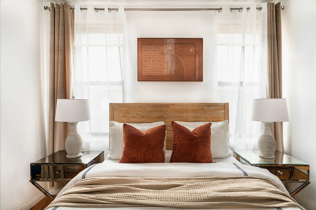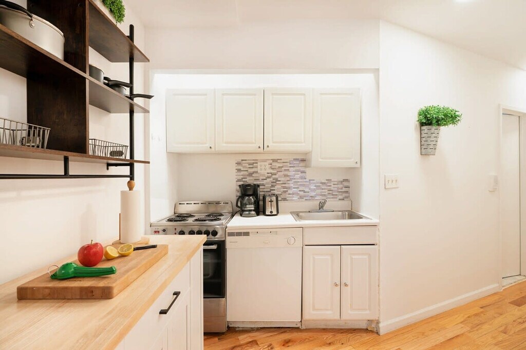 Feel at home in this fully furnished 2-bedroom, 1-bathroom apartment located in the heart of West Village, one of NYC's most desirable neighborhoods. This spacious apartment, approximately 1,000 square feet, offers a large living room and modern kitchen appliances, perfect for both business and pleasure. With south and west exposure, the apartment is bathed in natural light, creating a bright and inviting atmosphere. Designed for comfort and convenience, this apartment comes fully equipped with everything you need for a seamless move-in. Both bedrooms feature a queen-size bed with a memory foam mattress for your comfort. Enjoy a cozy living room with a sofa and a 50” Smart TV, a dining table, and a full-sized kitchen equipped with a dishwasher, stove, oven, and all the cookware needed for meal preparation. Linens, towels, pillows, and high-speed Wi-Fi are also provided for your convenience. Situated in a small, well-maintained boutique building with only four apartments, this home offers a rare level of privacy. Located steps away from top restaurants, cafés, boutiques, and transportation, this is West Village living at its finest. The neighborhood comes alive at night with sounds from restaurants, late-night coffeehouses, cafés, theaters, and music clubs. Enjoy dining at established restaurants like Blue Ribbon, The Fatty Crab, and The Spotted Pig, or explore famous jazz clubs such as the Blue Note. The area is also great for shopping, with specialty book and record stores, antiques and craft shops, and major retailers like Urban Outfitters and Marc Jacobs. Close access to the A, C, E, B, D, F, V, N, R, Q, 1, 2, 3, and 6 train lines makes getting around the city easy. New York City's heating season lasts until the end of May. Window air conditioning will be installed in the apartment starting mid-April, but you can request an earlier installation if needed.