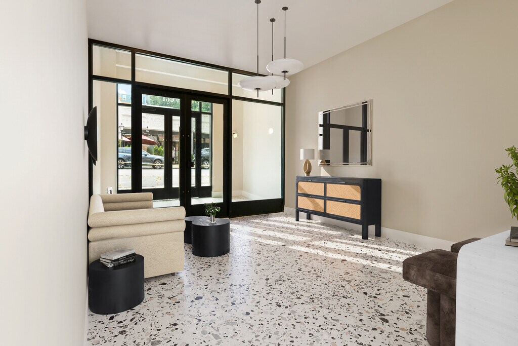 This is the most desirable apartment in this new building! Unit 5c is on the highest floor and features 2 full baths and 2 bedrooms with an in unit full size washer dryer plus a gourmet kitchen leading to a 35 foot long private terrace! Available December 15th. Elevator building. Fees: $75 amenity fee includes gym, lounge, rooftop deck, and water. Optional assigned parking in the private lot in the rear of the building is $185 a month. Pets are welcome --$75 a month.