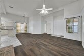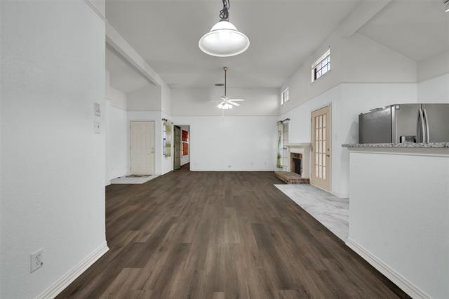 This home boasts 3 spacious bedrooms and 2 baths, providing a great space for comfortable living. The interior features a mix of laminate and tile flooring (NO CARPET), adding a touch of elegance and warmth. The living room is a perfect space for cozy evenings, and ceiling fans for those warmer days. Additionally, it comes with washer, dryer and fridge for your convenience. Outside, you'll find a private backyard, ideal for outdoor activities or simply enjoying the Texas sun. The property also includes two covered parking spaces.