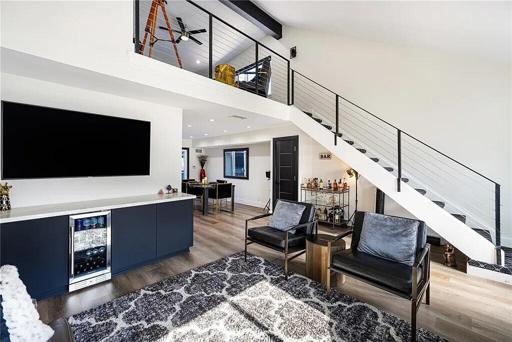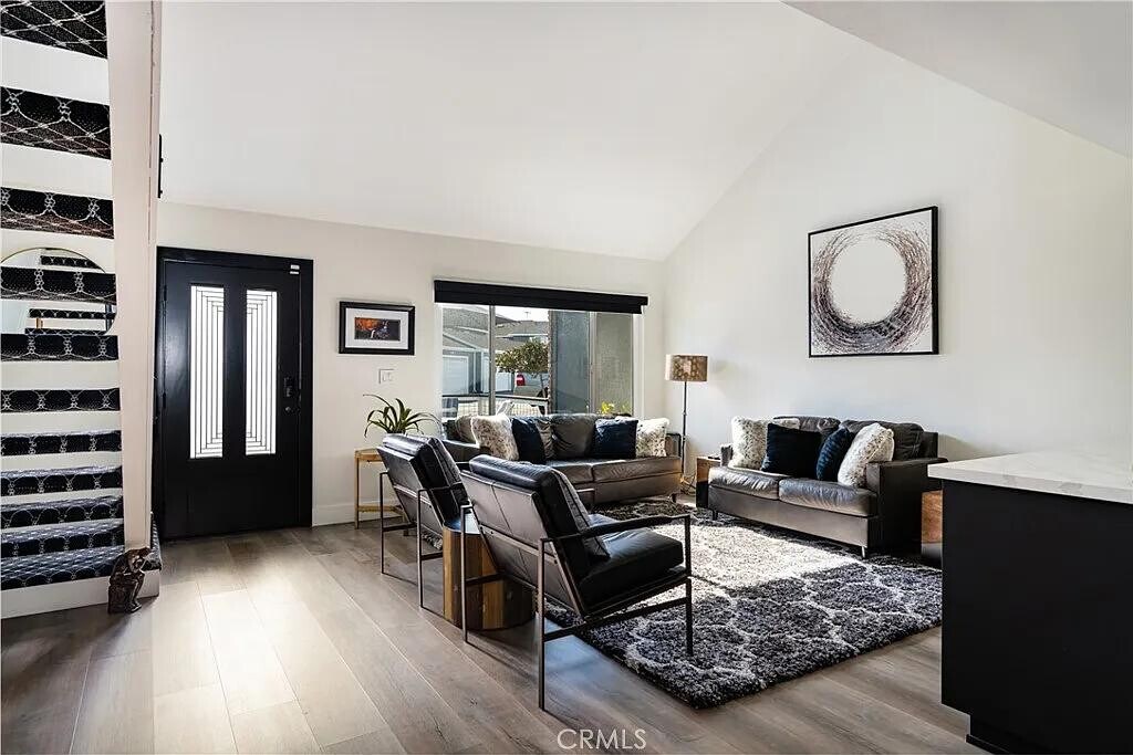 Residents also receive one permit parking for use in any permit space, first-come/first-serve and there is also guest parking by the pool and street parking nearby. New furnace and air conditioning for the hot summer days ahead, new tankless water heater, built-in closet system. Custom window coverings and dual pane windows/sliders. Monticello Townhomes has low HOA dues (which include water and trash), no land lease & no Mello-Roos. The community includes 2 pools/spas and a Clubhouse. Ideally located near freeways, fairgrounds, Vanguard University, airport, South Coast Plaza, beaches and more. Everything in this home is dialed in and Wi-Fi enabled This hip monochromatic loft offers approximately 1,045 sf of luxurious living space in popular Costa Mesa. The dramatic living space has vaulted ceilings, a built-in design wall featuring beverage fridge with storage, and a cool bar area under the stairs. The stunning black staircase railing has custom cables creating a unique focal po...