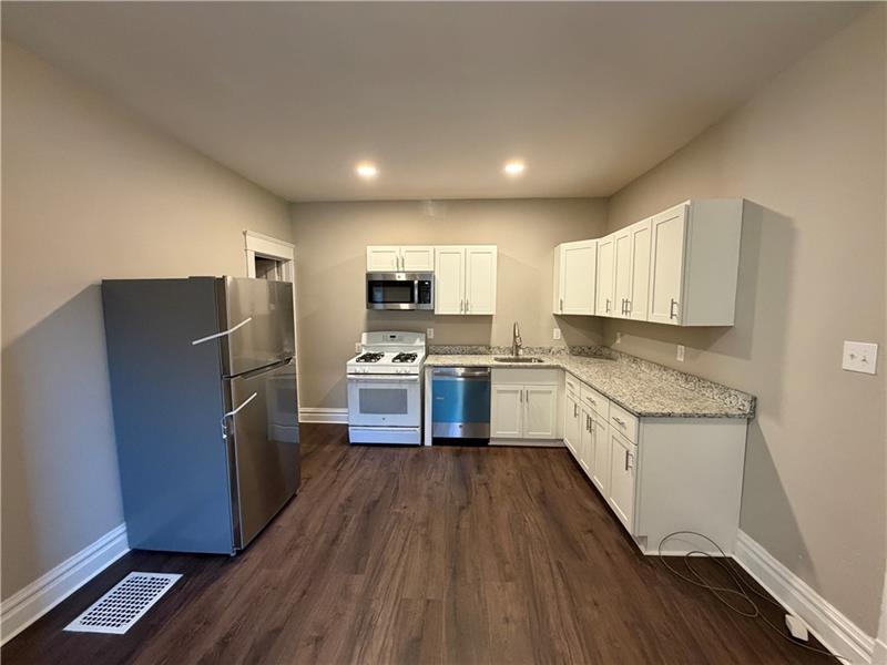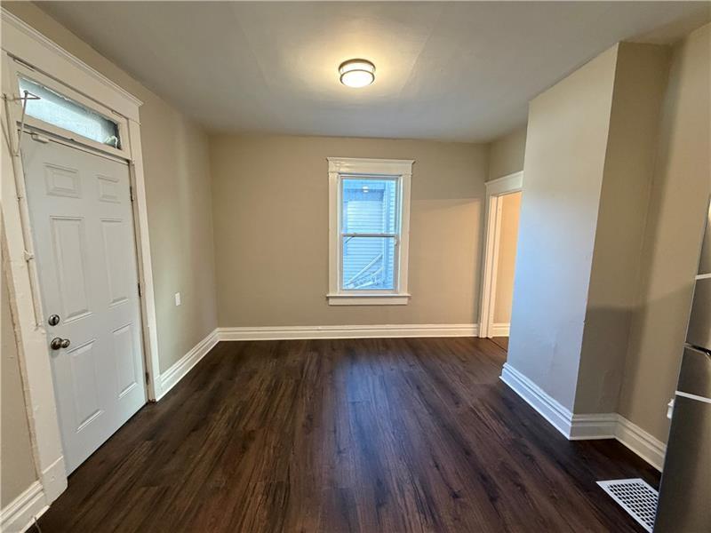 Spacious 3-Bedroom property available for rent! This is the right side of the duplex - with private entrances and no shared interior spaces. This 3-bedroom, 1 full bath home offers gas heat and central A/C for year-round comfort. The main level features brand new flooring and fresh paint, high ceilings, and original character details. Spacious living room with decorative mantle and a large formal dining room. The updated eat-in kitchen includes new cabinetry, granite countertops, and appliances (refrigerator, dishwasher, microwave, and gas stove). Upstairs you’ll find three nice sized bedrooms and a full bathroom with tub/shower. Additional storage is available in the walk-up attic. The unfinished basement includes washer/dryer hookups and is accessed off the kitchen. Enjoy both front and rear covered porches! Trash service and grass cutting are included in rent. Tenant is responsible for all other utilities and snow removal. One pet may be considered with additional fee, depending on size and breed, with an additional fee.