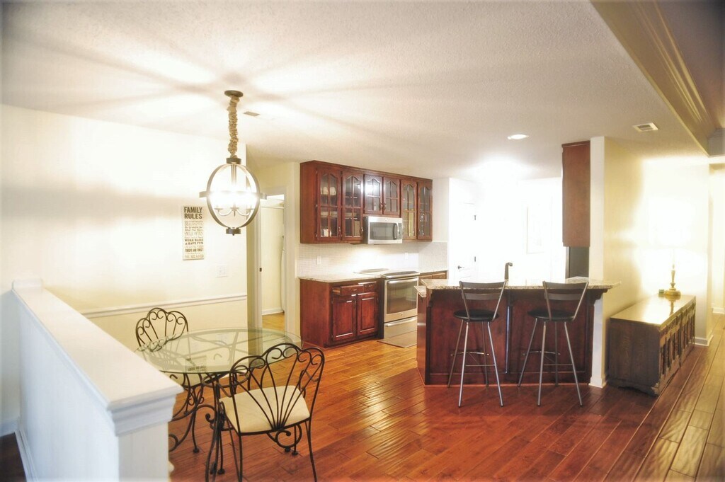 Nice large house with great open spaces and large closets. Features hardwood floors, pass through wood burning fireplace, granite counters and updated fixtures and luxury appurtenances. Gourmet kitchen with Induction Stove(including a nice set of induction cookware.) Home is delivered partially furnished with high quality 'Asian themed' furnishings and television screens as seen in pictures(to be added the week of the 21st.) Also includes complete servicing set, dishes and cutlery. Landscaping and yard maintenance are included in the lease contract. Call Darin at with any questions or to schedule a viewing. Apply online at:
