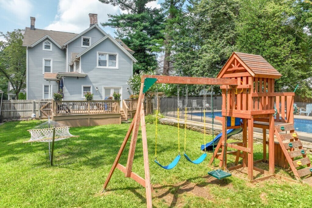 Feel at home in this spacious 6-bedroom villa, located just 30 minutes from NYC. This family-friendly home sleeps up to 14 guests. This home features a fully equipped kitchen, a spacious dining area, and a comfortable living room with a Smart TV. For entertainment, enjoy the pool table and a kid’s desk area. The outdoor area includes a large private backyard with a pool, a hammock, a BBQ grill, a fire pit, and a covered deck with a retractable canopy. Pool heating is available in October for an additional $50 per day, and must be paid for all days stayed. Located in a quiet, residential neighborhood, this villa is a short walk from Wood Avenue shops and eateries. It's also near parks, malls, and trains. Nearby attractions include Warinanco Park (7 minutes), Hawk Rise Sanctuary (10 minutes), and Liberty State Park (30 minutes). The Roselle Park Train Station is 8 minutes away, offering a ~35-minute ride to NYC Penn Station. Newark Liberty International Airport is 15 minutes away, with quick access to I-95, Route 1&9, and the Garden State Parkway. The pool is closed from November to April. Fast Wi-Fi is available throughout the home. Includes a dedicated workstation in the 2nd-floor master suite. [SI]