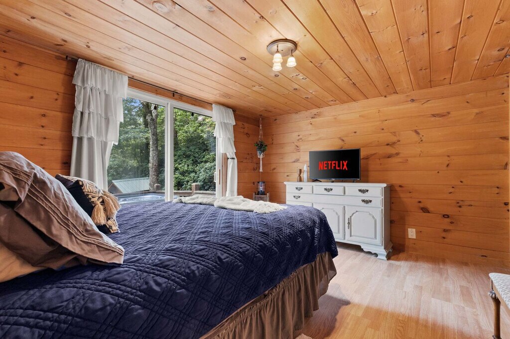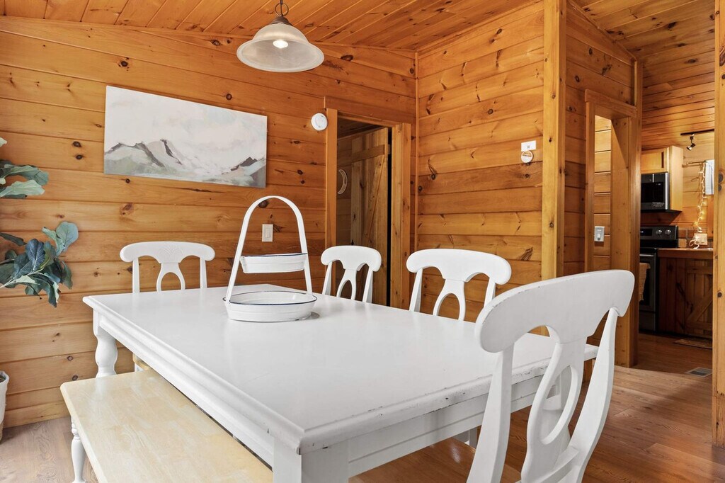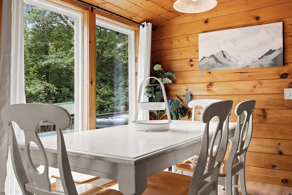 Feel at home in Luna Lodge, a charming 3-bedroom, 2-bath cabin tucked away on Snake Nation Road in Blue Ridge, GA. Sleeping up to 8 guests, this retreat is perfect for families, friends, or couples. This home features spacious living areas, a fully equipped chef’s kitchen with high-end appliances, a large refrigerator, ample cabinetry and cooking space, and a drip coffee maker. Relax in the living room with its 55” Smart TV, large leather sofa, indoor fireplace, and expansive windows. For outdoor fun, enjoy the wrap-around deck, fire pit, hot tub, outdoor patio/dining area, BBQ grill, corn hole, and fully fenced yard. Up to 2 dogs are allowed for $125 per stay. Just minutes from downtown Blue Ridge, this home is close to shops, dining, scenic trails, and waterfalls. Nearby attractions include the Blue Ridge Scenic Railway (~3 miles), Mercier Orchards (~7 miles), Fall Branch Falls (~9 miles), Lake Blue Ridge (~6 miles), and the Blue Ridge Mountains Arts Association (~3 miles). Enjoy nearby restaurants such as Black Sheep Restaurant Bar & Patio (~3 miles), Harvest on Main (~3 miles), Cucina Rustica (~9 miles), Toccoa Riverside Restaurant (~8 miles), and Southern Charm Restaurant (~3 miles). Renting a car is a convenient option to explore the area. Check-in is at 4pm and check-out is at 10am. No cats are allowed. No parties are allowed—violations may result in immediate termination of the stay. An exterior camera is installed solely to monitor the cleaning team for quality and security purposes. Parking is available in the driveway for a maximum of 3 cars. [SI]