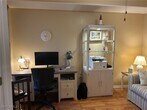 BEAUTIFULLY FURNISHED FIRST FLOOR END UNIT LAKE VIEW CONDO at Stratford Place,2 Bedroom plus Den/2 Bath with 1 car garage. Stratford Place is located off Whippoorwill Lane which is on the south side of Pine Ridge Road just west of I75,also accessible from Livingston Rd. Centrally located with easy access to Naples,North Naples,Downtown,I-75. Close to grocery stores,gas shopping,golf,pickleball,tennis,gym,and a host of dining venues. 10-15 minutes to gorgeous Naples beaches. 1.1 miles to Physicians Regional Hospital. Condo has been recently remodeled including new granite countertops cabinetry,and appliances. Open and bright condo that feels like a single-family home inside with a split bedroom floorplan. The master suite with four-poster king-sized bed has a large walk-in closet,dual sinks and large recently tiled shower in the bath. Guest room has a queen-sized bed,closet,dresser,and guest bath is just two steps outside the bedroom door. Den/office has a large desk to work from,and a pull-out sofa. Find a large dining area as well as a bonus relaxation sunroom off of the kitchen,and an eastern facing lanai which is comfortably furnished and includes a roll down screen. Washer-Dryer in unit. Kitchen dishware,pots,pans,utensils,small appliances,etc. are here for your use. Community pool is a short walk from the front door.