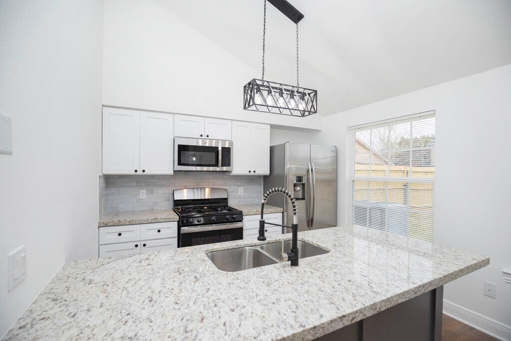 THIS CHARMING HOME HAS BEEN COMPLETELY RENOVATED! IT IS PERFECTLY PLACED ON A QUIET CUL-DE-SAC IN THE COMMUNITY OF TOWN WEST OFFERING NEIGHBORHOOD AMENITIES. AS YOU ENTER,YOU WILL APPRECIATE THE RECENT LUXURY VINYL PLANK TILE FLOORING THAT FLOWS THROUGHOUT THE HOME. THE LIVING ROOM IS SPACIOUS AND FEATURES HIGH CEILINGS,A COZY FIRE PLACE & A WALL OF DOUBLE PANED WINDOWS THAT OVERLOOK THE HUGE BACKYARD! THE UPDATED KITCHEN IS A COOKS DREAM! IT BOASTS GRANITE COUNTERTOPS,RECENT SHAKER CABINETRY,UNDER-MOUNTED SINK,GAS RANGE,STAINLESS APPLIANCES AND STYLISH LIGHTING! THE PRIMARY BEDROOM IS TRULY A PRIVATE & TRANQUIL RETREAT! ALL SECONDARY BEDROOMS ARE DOWN WITH A BONUS GAME-ROOM ON THE SECOND FLOOR! ALL BATHROOMS HAVE BEEN TASTEFULLY UPDATED! THE PARK-LIKE BACK YARD IS INCREDIBLE. THE PRIVATE FULLY FENCED YARD OFFERS PLENTY OF ROOM TO RUN AND PLAY! THIS FULLY RENOVATED HOME IS FANTASTIC! IT IS TURN KEY & READY FOR MOVE-IN! THIS WON'T LAST LONG SO HURRY! MLS# 59577721