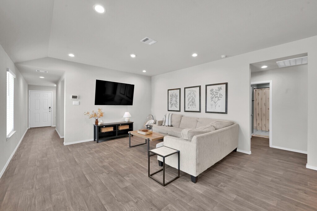 Beautifully maintained 3 bed,2 bath single-story home in Granger Pines Neighborhood. Features an open-concept layout with a spacious living,kitchen,island,and pantry. The private primary suite,tucked into the back,includes a large walk-in closet and ensuite bath. Allowing the 2 additional guest rooms and restroom to be off of the living space. Enjoy outdoor living with front and rear covered patios,an extended back patio with covered pergola,and an extra-large backyard with a water view. Ready to entertain and enjoy no matter the weather! Located in a friendly community with nearby schools and amenities located at The Grove - splash pad,6-acre lake,pocket parks,trails and pavilion —perfect for comfort,space,and style in a serene setting. MLS# 7056666