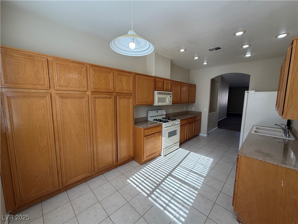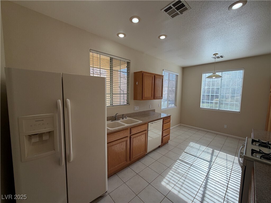 This three-bedroom, two-bath single-story home is in a gated community with an open floor plan. Features include granite kitchen countertops, a breakfast nook, and a spacious primary bedroom separate from the secondary bedrooms. The primary bath offers a walk-in closet, double sinks, and a separate tub and shower. Tile flooring in the kitchen and bathrooms, a covered patio, and low-maintenance landscaping. Located in Henderson with easy access to I-215, shopping, dining, parks, and schools.