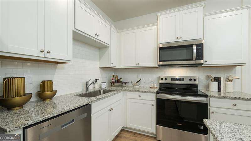 Discover this stylish new-construction townhome offering 3 bedrooms and 2.5 baths with modern finishes throughout. The main living areas feature recessed lighting and luxury vinyl plank flooring for a sleek, low-maintenance look. The chef-inspired kitchen boasts white cabinetry, quartz countertops, a breakfast bar/island, and plenty of storage. Upstairs, the owner's suite includes a private bath with a walk-in shower and double vanity. Additional highlights include a cozy family room, small loft area, and smart home technology that controls everything from the doorbell and thermostat to the lighting. The unit also comes equipped with a washer and dryer, while internet is conveniently included in the utilities. With its prime location just a short drive to all major interstates, this home is perfect for comfortable living and easy commuting.