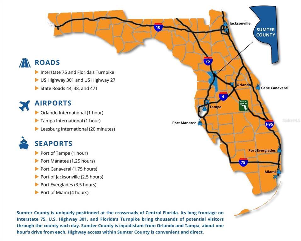 FOR LEASE 26 acres. Current Industrial zoning already in place. COUNTY DESIGNATED ECONOMIC ACTIVITY CENTER. If potential had a physical location this would be it. Heavy industrial zoning across the street. Commercial zoning as adjacent use. Future land use could be potentially converted to heavy commercial for the right project and end user. Almost 27 acres with 450 feet of frontage on SR 471. Possible small access to HWY 50 after DOT expansion. 3 parcels being sold together. Currently the property is only serviced by a residential well and the septic system attached to the residence on the property. High traffic area with future growth in all directions. Average daily traffic count in this area can exceed 14,000 vehicles per day. Please do not go on-site without an appointment. Sumter County is a pro-business county with an emphasis on manufacturing,distribution and agribusiness as targeted industries. Commute to Ocala,Tampa,Orlando or Lakeland in approximately 1 hour. Information deemed reliable but not guaranteed. Triple Net. Tenant agent to verify taxes,dimensions,and zoning needs for tenant. Site visits are available by appointment only 7 days a week with 24 hours notice. For more information,call today. MLS# G5102351