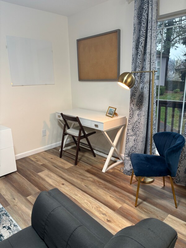 Property Id: 2226227 Tired of apartment complex living? This contemporary 1-bedroom, 1-bath apartment offers 528 sq. ft. of quiet comfort in the desirable quiet neighborhood of Clackamas. Completely renovated with modern kitchen and finishes in 2024. Enjoy a bright open floor plan with laminate wood floors, large windows, and a sliding glass door to a small deck. The kitchen features a fridge, range, pantry, and large island, while the bedroom includes a generous closet and the bathroom offers a full tub/shower combo. Combo in unit W/D for small loads, updated fixtures, and off-street parking included. Easy access to Kaiser, Clackamas Town Center, and I-205 for commuting. All utilities - electric, water, sewer, and garbage are included. Available now. No pets or smoking. 6 month lease, security deposit of one month's rent, application fee, income verification, background and credit check are required. Furnished option is added $100/month rent. Garage is not included.