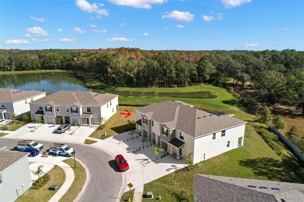 Welcome to Union Park,Wesley Chapel,offering an exclusive and serene view,with no rear neighbors and a picturesque panorama of a pond and woods. The back patio has been enclosed with screen recently.This end unit,all concrete block constructed townhome is uniquely positioned for privacy and scenic beauty,and is ready for immediate occupancy. Spanning 1758 sqft,the townhome features a modern open-concept ground floor with a large kitchen,equipped with essential appliances including a refrigerator,built-in dishwasher,electric range,microwave,washer,and dryer. The expansive family room flows effortlessly into a covered lanai,perfect for enjoying the outdoor ambiance in comfort. The second-floor houses a luxurious primary bedroom with an en suite bathroom,two additional bedrooms,and a full bathroom,all designed for comfortable living. Notably,the washer/dryer room is conveniently located upstairs near a versatile loft space,which offers stunning views of the pond,adding to the home’s appeal. Union Park,a vibrant and sought-after community in Wesley Chapel,is strategically located near top-rated schools,The Shops at Wiregrass,and provides easy access to I-75 for a quick commute to downtown Tampa. As a resident,you'll enjoy inclusive high-speed internet and cable,alongside superb amenities such as a clubhouse with a fitness center,lap-style pool,sports courts,a tot lot,and walking trails. This townhome is more than just a place to live; it’s a lifestyle choice in one of Wesley Chapel's most desirable neighborhoods,where luxury,convenience,and natural beauty come together seamlessly.