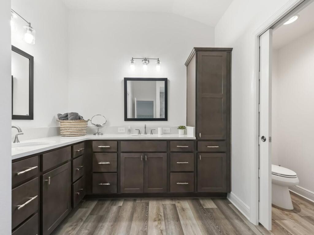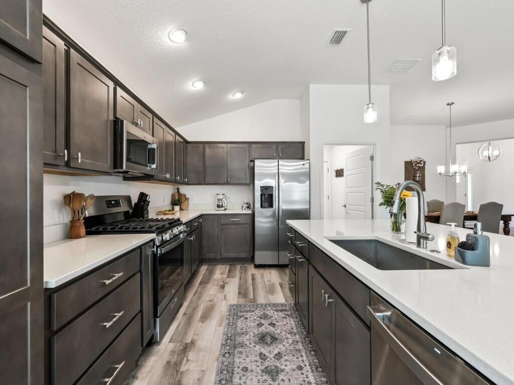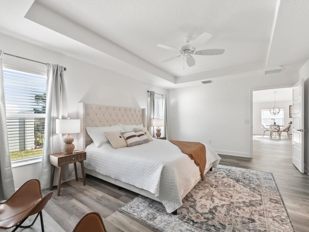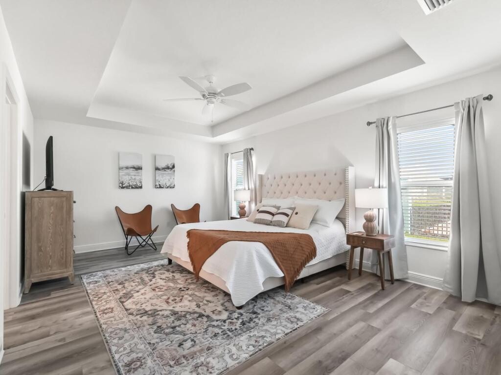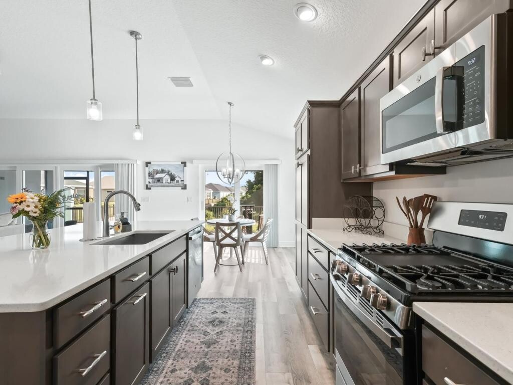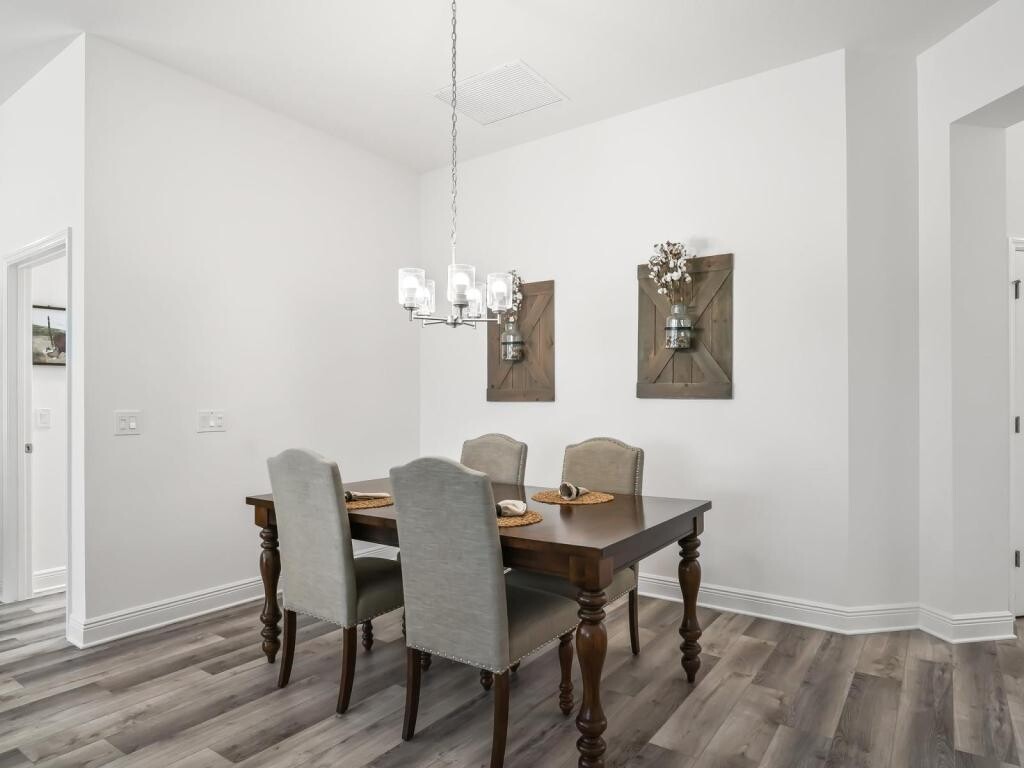 DYMANITE LOCATION! ABSOLUTELY GORGEOUS Veranda HOME in The Village of Lake Denham! This WATERFRONT ENTRY HOME is nestled on an oversized homesite backing up to the PRESERVE, providing you with all the beauty, serenity and privacy this location has to offer. Boasting an attractive front elevation; architectural details, gable rooflines, perfectly manicured yard and pleasing color palette. Step inside the glass entry door that is balanced with matching glass sidelights, you are welcomed into the foyer, the extended foyer hallway houses a coast closet, the luxury vinyl plank flooring that flows throughout the home and the neutral interior finishes are complimented by the hand troweled textured finishes on the walls and ceiling. The luxury kitchen boasts functionality and elegance offered by the warm rich tones of the cabinetry, cabinet pantry, crown molding, quartz countertops, island with large single kitchen sink, disposal, stainless steel appliances, recess and pendant lighting and a naturally lighted eat-in breakfast nook with sliding glass doors leading out the the lanai. This open and spacious layout offers you soft and cozy furnishings in the living with a large sectional, decorative electric fireplace and a generous sized dining room. The inside laundry is located off of the kitchen with washer, dryer and cabinetry for additional storage, and leads to the double car gar with cart garage. The primary bedroom is located in the rear of the home with large windows for a great view out to the preserve, king size bed with upholstered headboard, accent chairs, and a tray ceiling. The primary bathroom has been tastefully appointed with plenty of warm toned cabinetry with tons of storage, quartz countertops, double vanities, private commode, large tiled walk-in shower with glass panels and enormous walk-in closet. The two guest bedrooms are located toward the front of the home sharing the guest bathroom with a tub/shower combination. Additional features include; various ceiling fans, double pane insulated windows, stacking sliding glass doors that lead you out the the oversized 28' x 11' north facing-covered and screened-in lanai. Rest here while enjoying your days sipping your favorite beverage and taking in all that nature has to offer. This well appointed home was built in 2023 and presented to you furnished "TURN KEY"! Come enjoy everything THE VILLAGES has to offer! Convenience, golfing, dancing, restaurants, shopping, medical, clubs and so much more! Call TODAY to book your Florida Winter Vacation! October, November and December rates are $4900/month. January, February and March rates are $5900 per month (three month minimum for this timeframe). April $5200. May, June, July, August, September rates are $4500 Annual rates are $4500 (one year minimum). Click here to see the video of this beautiful retreat located at: 1393 Daniel Way, The Villages, FL 34762........