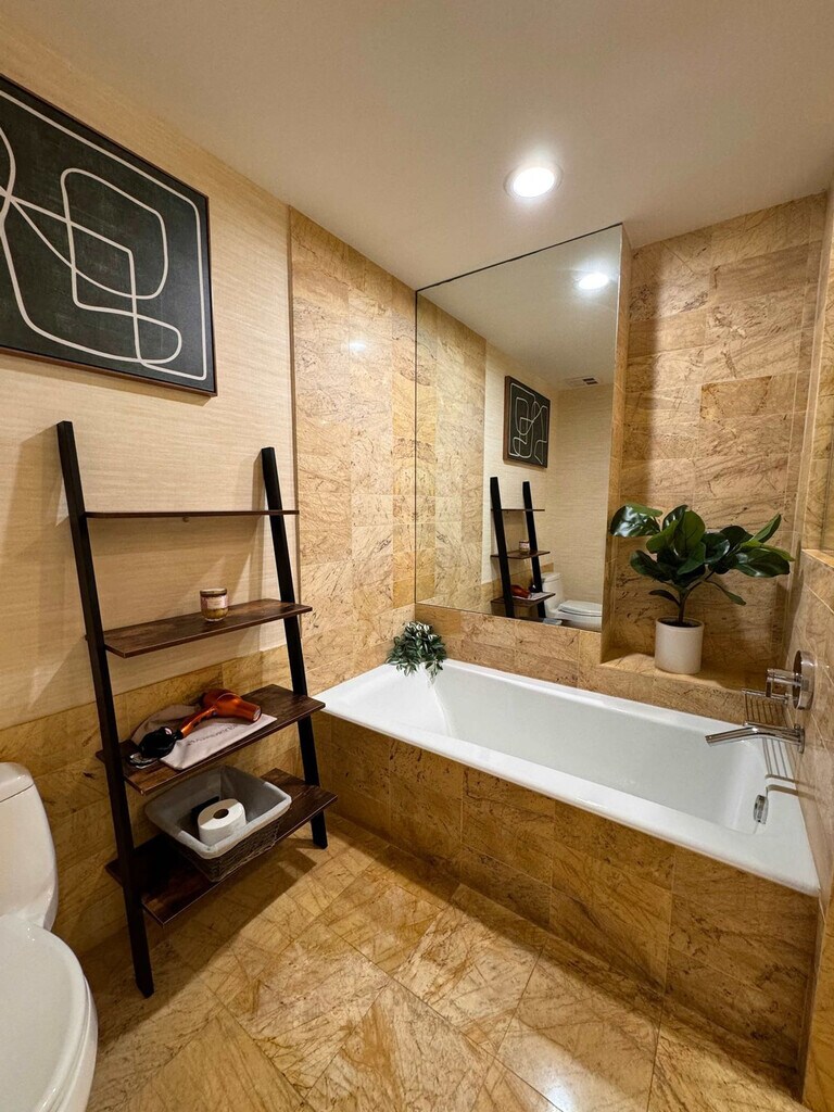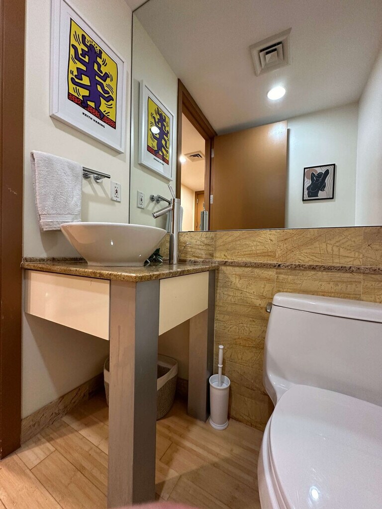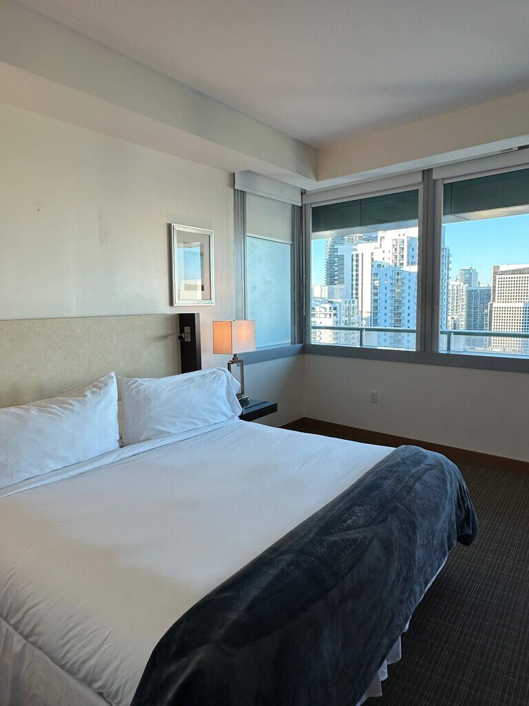 Feel at home in this beautiful condo located on the 31st floor of the AKA Hotel, offering views of Biscayne Bay from its private balcony. This uniquely elegant apartment is fully furnished and features a spacious bedroom with a king-size bed, desk, dressing room, and private bathroom. The private balcony connects to the social area, which includes a living-dining room and separate kitchen. A guest bathroom and an in-unit washer/dryer are also available. The kitchen is equipped with all the necessary appliances to make you feel at home during your visit to Miami. An inflatable mattress for two people with linens is available for additional guests. Parking is available in front of the valet parking and is free 24 hours a day, though there is no exclusive parking space. Brickell has become America's new Manhattan, offering a wide range of restaurants, entertainment venues, shopping malls, and sophisticated, modern spaces. Its proximity to Downtown, Coral Gables, Little Havana, and other tourist areas in Miami make Brickell the ideal place to stay. To enter the apartment, a photograph of the reservation holder's identity document must be sent 24 hours prior to entry. [SI]