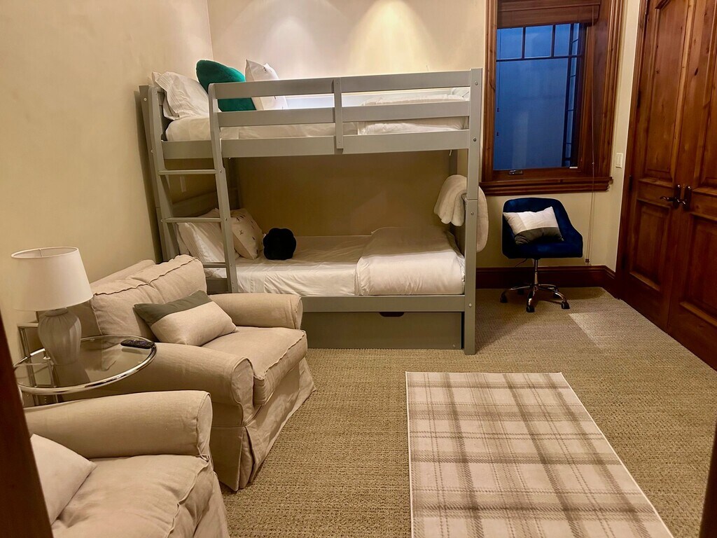 Experience refined mountain living at this exceptional Snowbunny Lane retreat, a 4,751-square-foot half-duplex ideally located just steps from the free shuttle into downtown Aspen. With five bedrooms and seven bathrooms, this spacious home offers the perfect balance of luxury, comfort, and convenience for an unforgettable Aspen stay. The main living level features a bright, open-concept design where the kitchen, dining, and living areas flow effortlessly together—ideal for entertaining or unwinding after a day on the slopes. Vaulted ceilings, expansive windows, and high-end finishes create a warm, inviting atmosphere filled with natural light. A private office overlooks the generous backyard, providing a quiet and inspiring space to work or retreat. Two primary suites anchor the home, each offering a true sanctuary with spa-style bathrooms and ample closet space. This thoughtful layout provides exceptional flexibility for families, couples, or multi-generational groups traveling together. Outdoors, the beautifully landscaped backyard is designed for year-round enjoyment, featuring a large patio with a built-in fireplace and outdoor TV—perfect for après-ski evenings or summer gatherings under the stars. The lower level is an entertainer's dream, complete with a sleek wet bar, and media lounge with multiple TVs. Set on quiet and coveted Snowbunny Lane, this home offers privacy and tranquility while remaining just minutes from Aspen's world-class skiing, dining, and shopping. With easy access via the nearby free shuttle and an unbeatable combination of space, style, and location, this property delivers the ultimate Aspen rental experience.