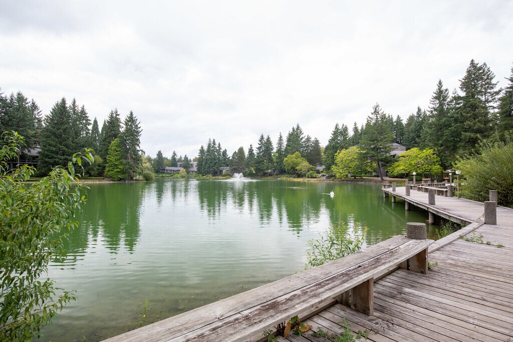 Lakefront 2-bedroom, 2-bathroom, townhouse located in the triangle of Bridle Trails neighborhood w/ easy access to 405/520, 5 minutes to Microsoft, 8 minutes to Google Kirkland campus. With over 1,380 sq. ft, this unfurnished home property rental features high vaulted ceilings, open concept below, hardwood/tile flooring, fireplace, and skylights. The kitchen has a breakfast bar, quartz countertops, refrigerator, oven/range, garbage disposal, trash compactor, dishwasher, storage space. Large bedroom w/ walk-in closet. Washer & dryer in the unit. Fireplace in the living room. Electric heating, ceiling fans, and double pane/storm windows, too. One covered carport available and many open guest parking nearby. Storage in the carport. Amazing amenities within the community - Pools, large gym w/sauna, tennis, and restaurant. Walking distance to access to trails, golf courts, grocery shops, and Grass Lawn Park. Rent covering water, garbage, landscaping, HOA fees, and sewage. Tenant pays for electricity and gas (PG&E), cable, and internet. 1 month rent refundable deposit. Pet-friendly home but only cats are allowed. No dogs except service dogs (HOA policy sorry!). No smoking. - Covered - Lease Term : Desired = 12-18 Months, Longest = 24 Months - Pet Policy : Cat Only - Laundry : In-Unit - Included Utilities : Water, Trash, Sewage, Landscaping, HOA Monthly Dues - Appliances : Refrigerator, Oven/Range, Dishwasher, Garbage Disposal, Trash Compactor, Microwave - Climate Control : Electric Heating, Ceiling Fans, Double Pane/Storm Windows - Interior Features : Hardwood Floor, Tile Floor, Granite Countertop, Fireplace, Skylights