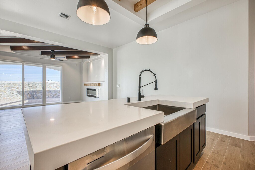 Welcome to this Beautiful House in El Paso, TX! Come and check this open design featuring 4 bedrooms and 2.5 Bathrooms. Features: Chefs Kitchen including quartz countertops, cooktop, direct hood vent, hidden controls, built in oven and microwave, dishwasher and more... Energy star home. We are working on the front landscape that consist on rocks and on the backyard where turf and stone will be installed for your to host family gatherings and is perfect for those seeking a cozy and comfortable living space. Features: Chefs Kitchen including 36' cooktop, direct hood vent, hidden controls dishwasher, stainless steel pot filler over cook top and large sliding back patio door unit. The energy advantage package is designed to reduce energy consumption by 40% exceeding energy star ratings! This property is part of The Club that includes Swimming Pool, Gym, Shade Structures,Tennis Court, Pickleball Courts Picnic Tables and is included for you and your family to enjoy it. Don't miss this opportunity.Tentatively scheduled to open on 2-28-26. With a $250 non-refundable pet fee for up to 2 pets, this house is pet-friendly for your furry companions. Make sure to check with your renter's insurance to see if your dog is covered. Make your appointment today! Property has everything you could ever want. Schedule a showing today.... and don't let this one slip away! This listing is submitted subject to errors, omissions or changes without notice. Potential tenants/buyers need to verify schools $50 application fee for each person 18 years and older living in the house.