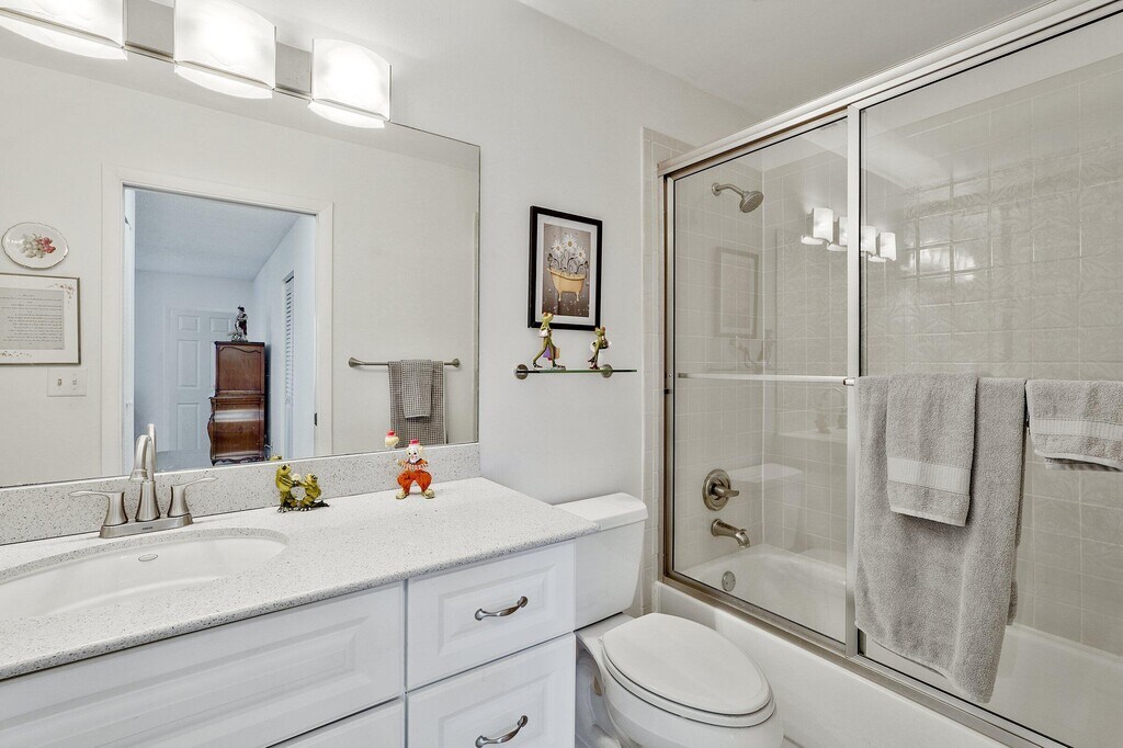 This immaculate 55+ villa is being offered both seasonally and annually. Seasonal rental is available for a minimum of 4 months. This unit features a large one bedroom but also has a Florida room which could be utilized as an office/den. Upgrades throughout the unit including kitchen cabinetry, granite counter-tops, stainless steel appliances, LED lighting, and a beautiful backsplash. The bathroom features Silestone counter-tops, glass doors, sinks and fixtures. There is plenty of bedroom storage featuring two walk in closets. In addition there is wall and linen closet. Enjoy the stackable washer/dryer and upgraded window treatments. This unit is perfect for the person who wants to enjoy the Florida weather and escape the cold.